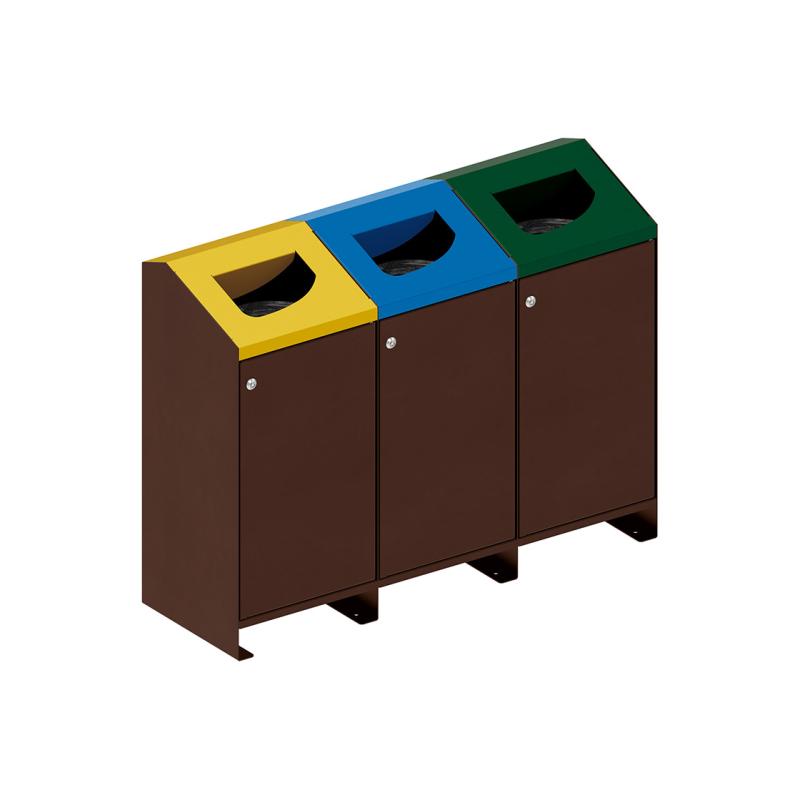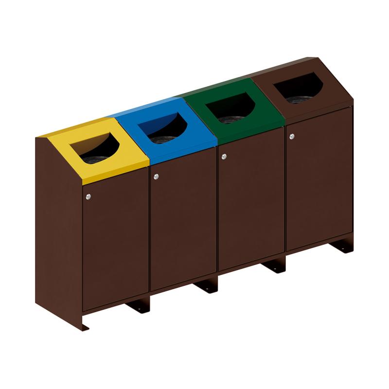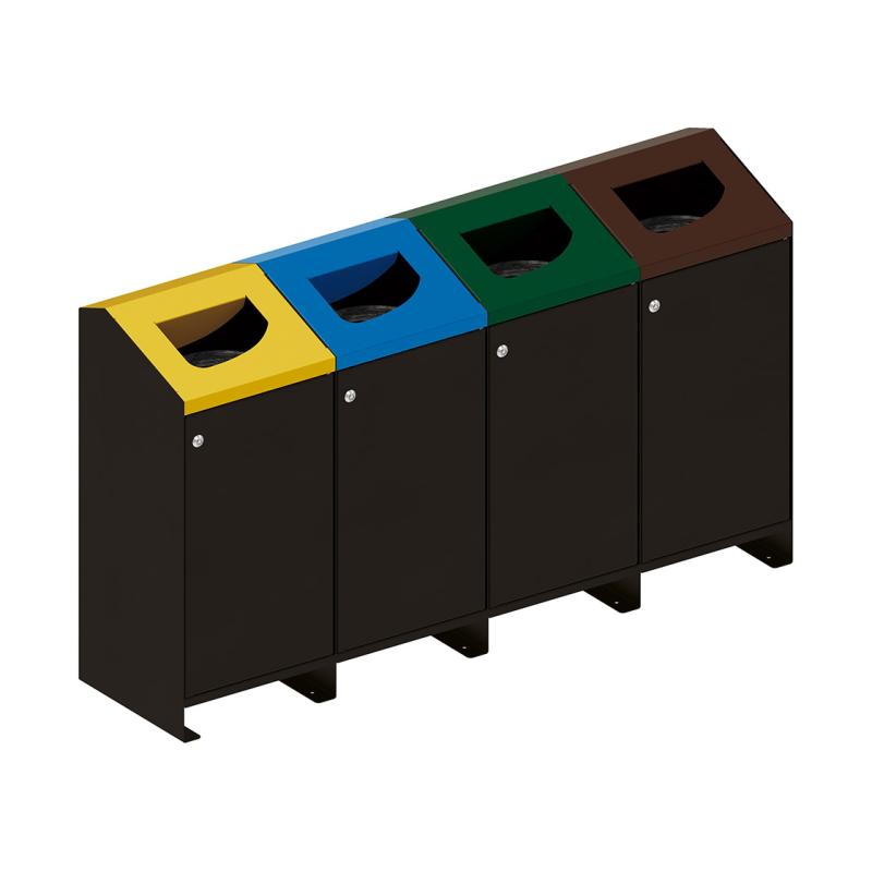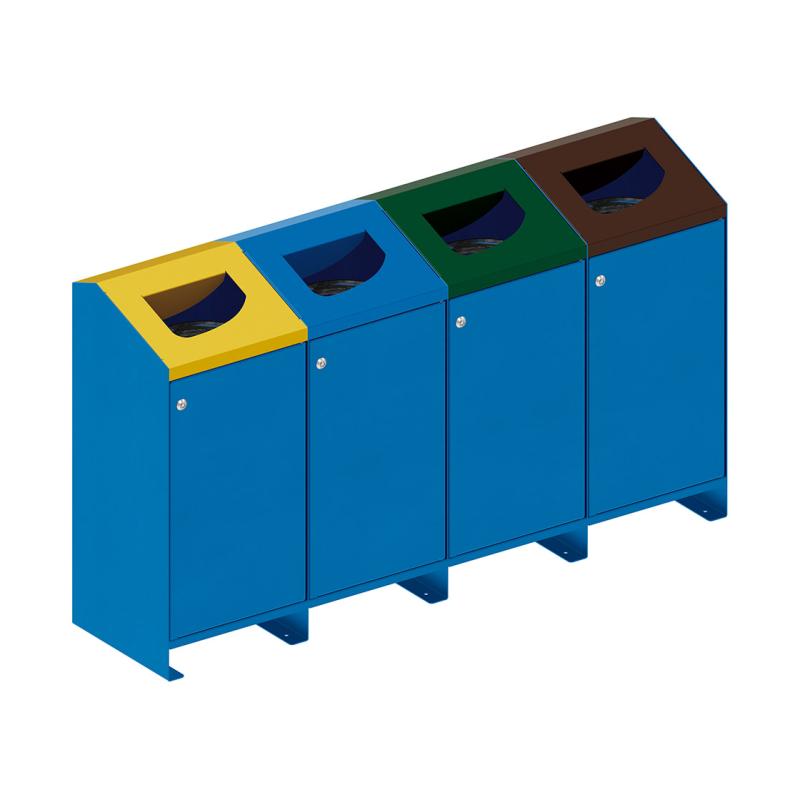 The Selective Sort Recycling Bin Kit is designed to function as a recycling point, allowing pedestrians to recycle several different kinds of recycling waste at the same location.