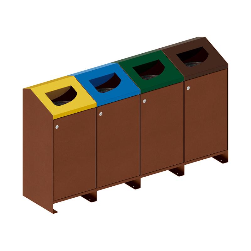 Combining several of Procity's 100L Berlin Recycling Bins, and adding colour-coded tops, this kit creates one of the toughest, most reliable and functional waste disposal solutions available at Start Safety. With its sturdy galvanised steel sheet structure (with a thickness of 3mm) and solid square build, it stands strong against year-round weather and offers great resistance to saline environments.