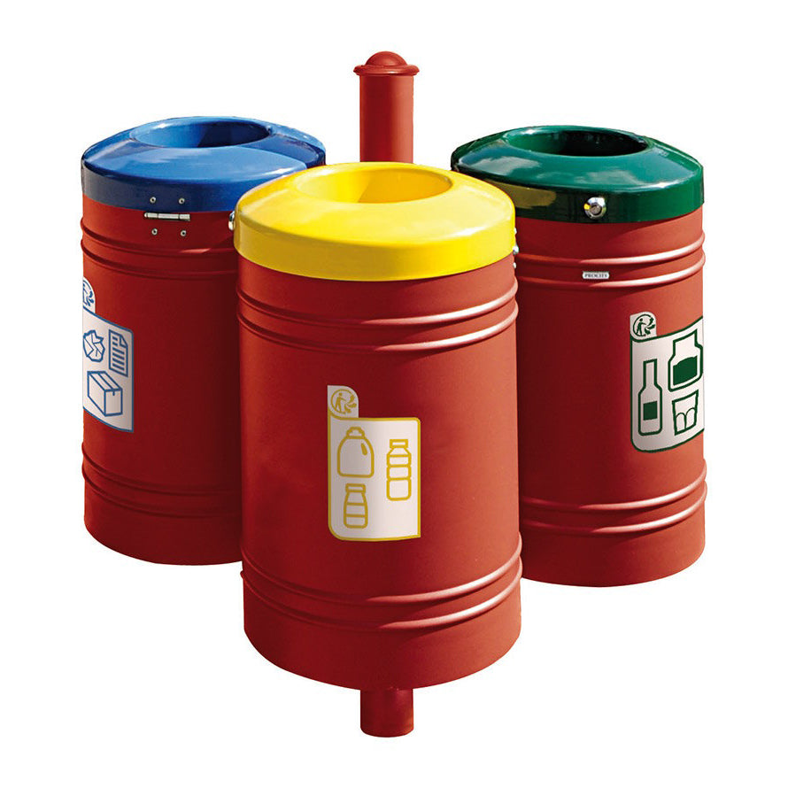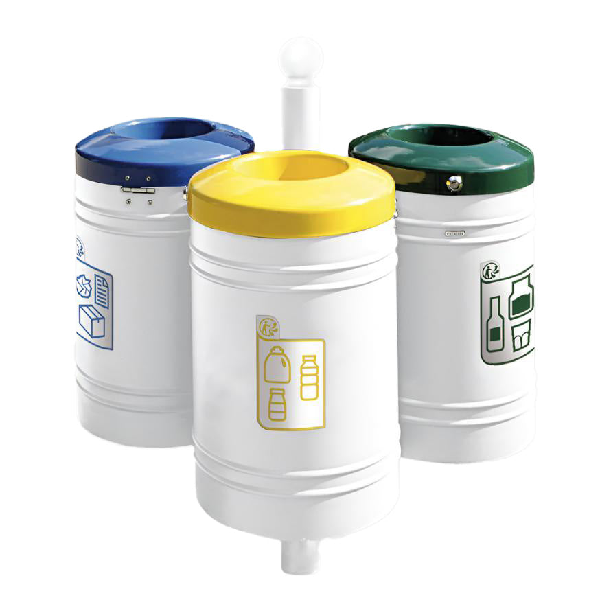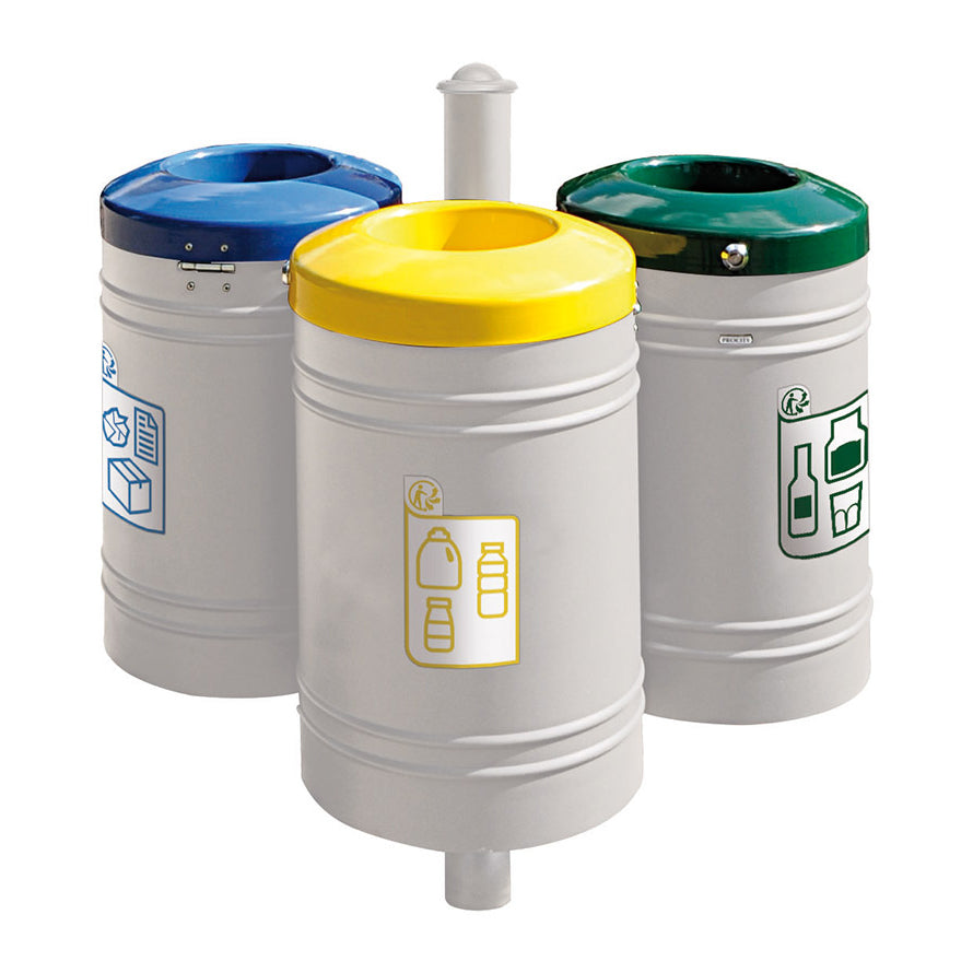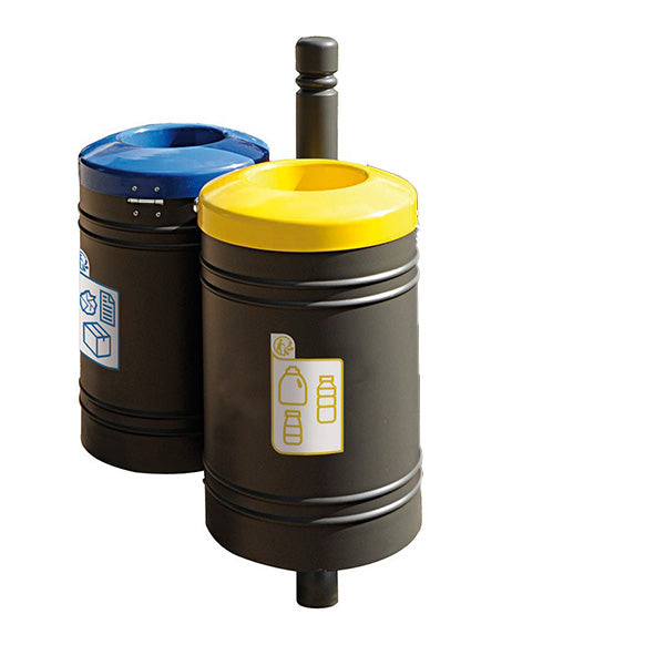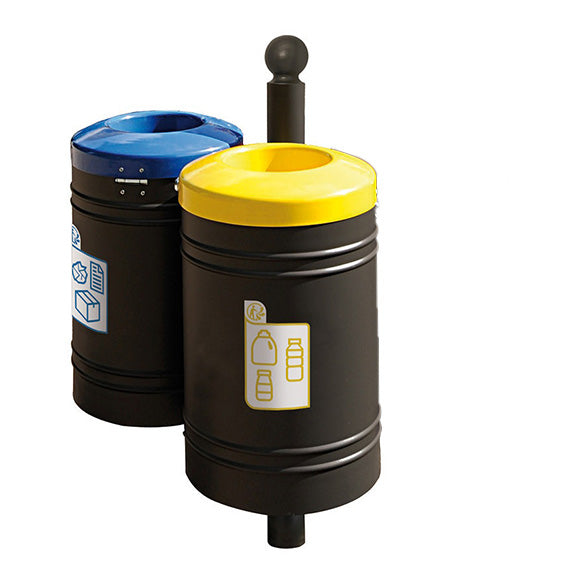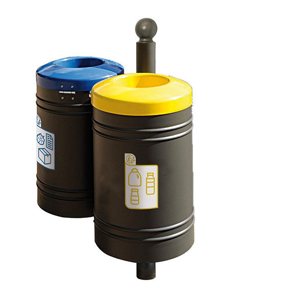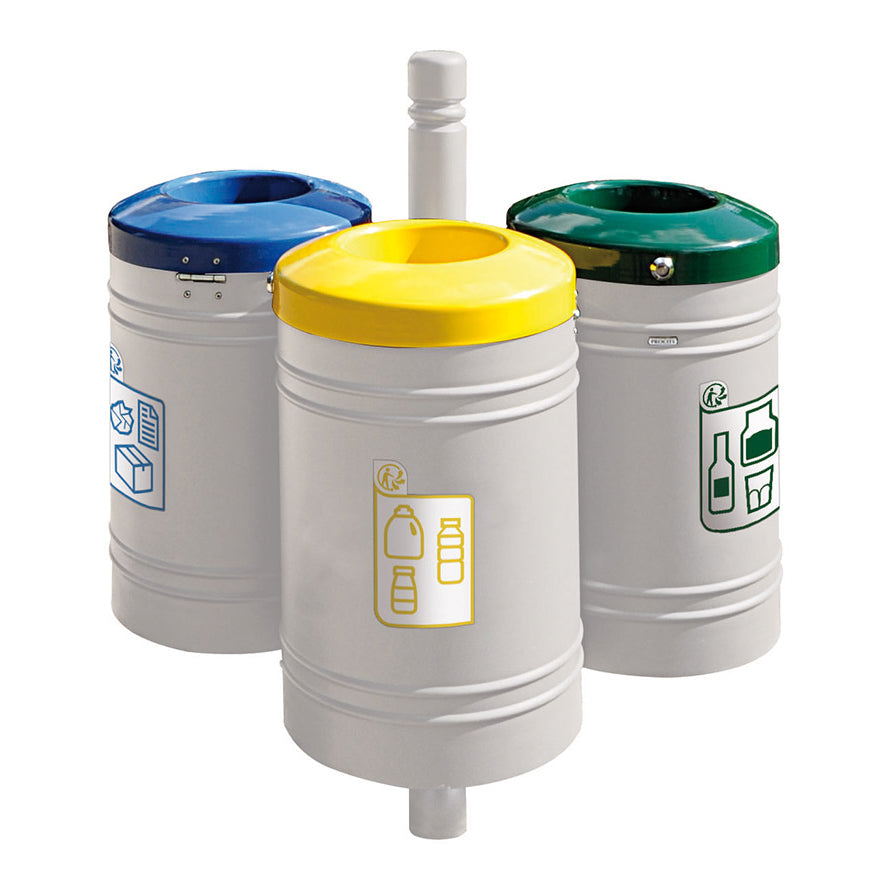 The Procity Selective Sort Recycling Bin Kit, with each bin holding a total capacity of 40L, features a design similar to the Procity Litter Bin on Side Mounted Post. This kit assembles one to three Procity litter bins around a central post to create a set. The central post can be finished with your choice of four decorative top caps from the Province collection - City, Agora, Sphere and Brushed Stainless Steel.