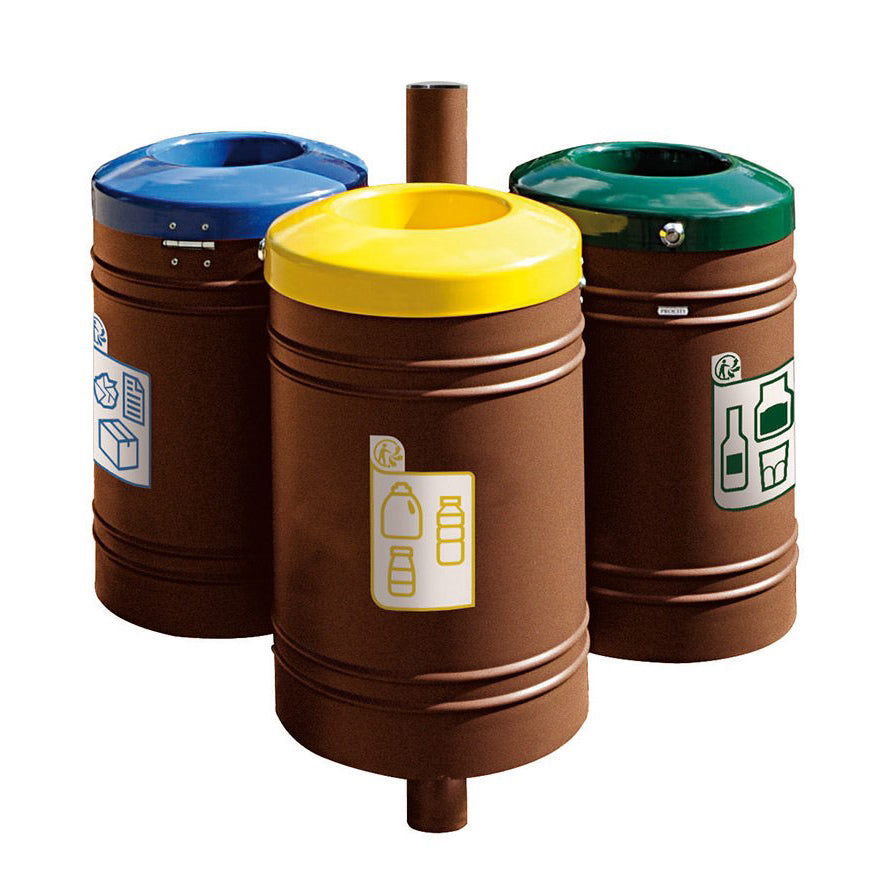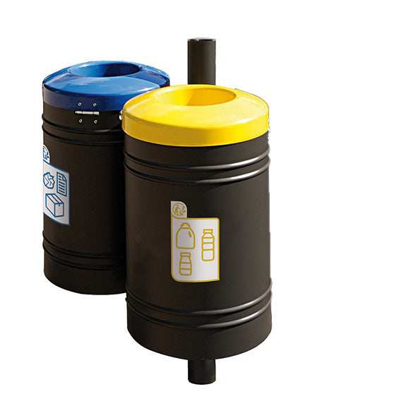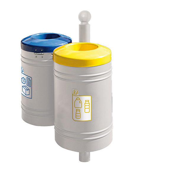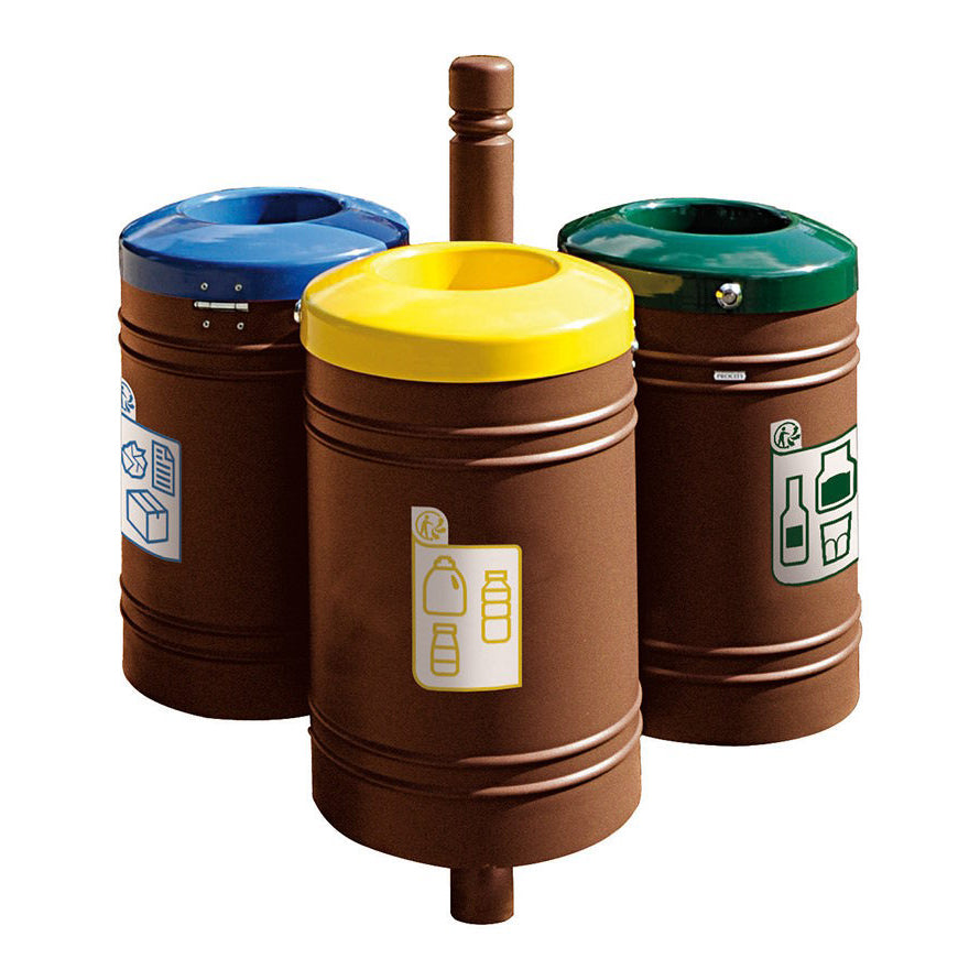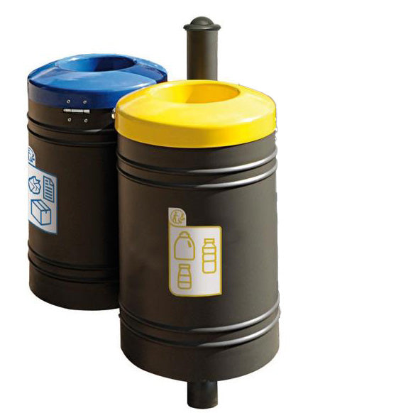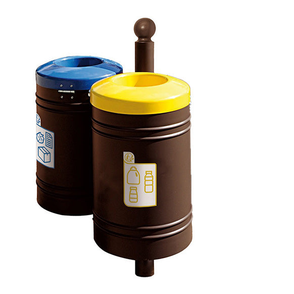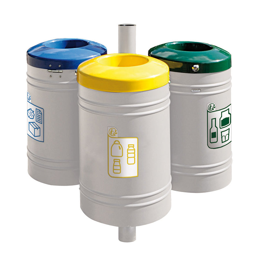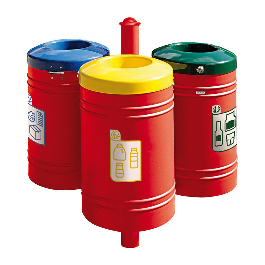 The Procity Selective Sort Recycling Bin Kit, with each bin holding a total capacity of 40L, features a design similar to the Procity Litter Bin on Side Mounted Post. This kit assembles one to three Procity litter bins around a central post to create a set. The central post can be finished with your choice of four decorative top caps from the Province collection - City, Agora, Sphere and Brushed Stainless Steel.