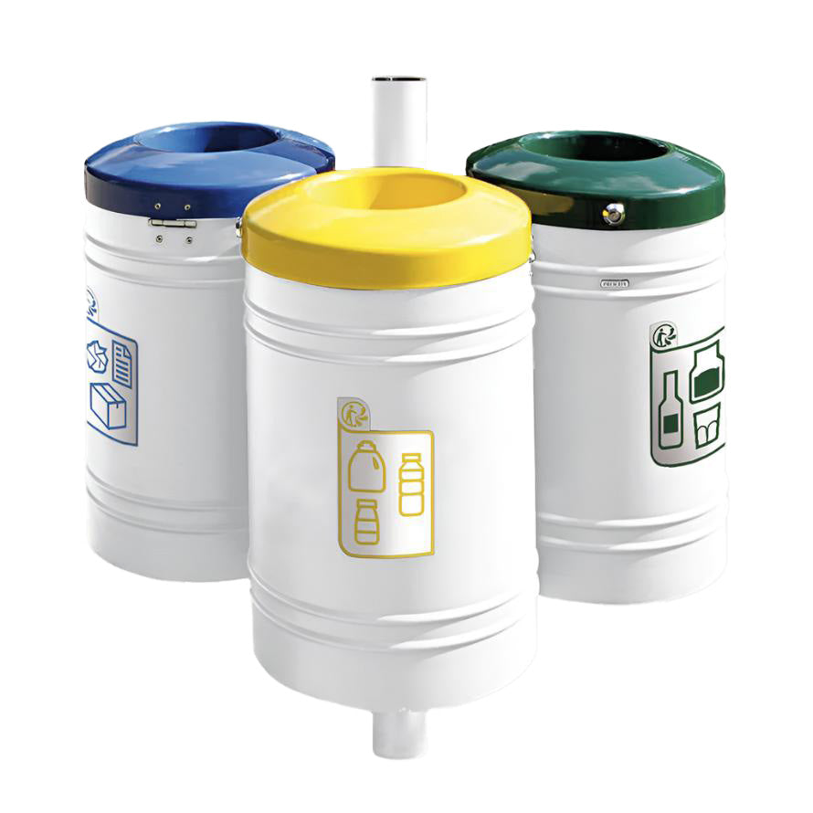 Improve convenience for users and streamline the process of sorting waste by using different coloured lids for easy identification. The specially designed lid is non-melting and self-extinguishing in case of a fire, featuring a small opening to deter household waste disposal.