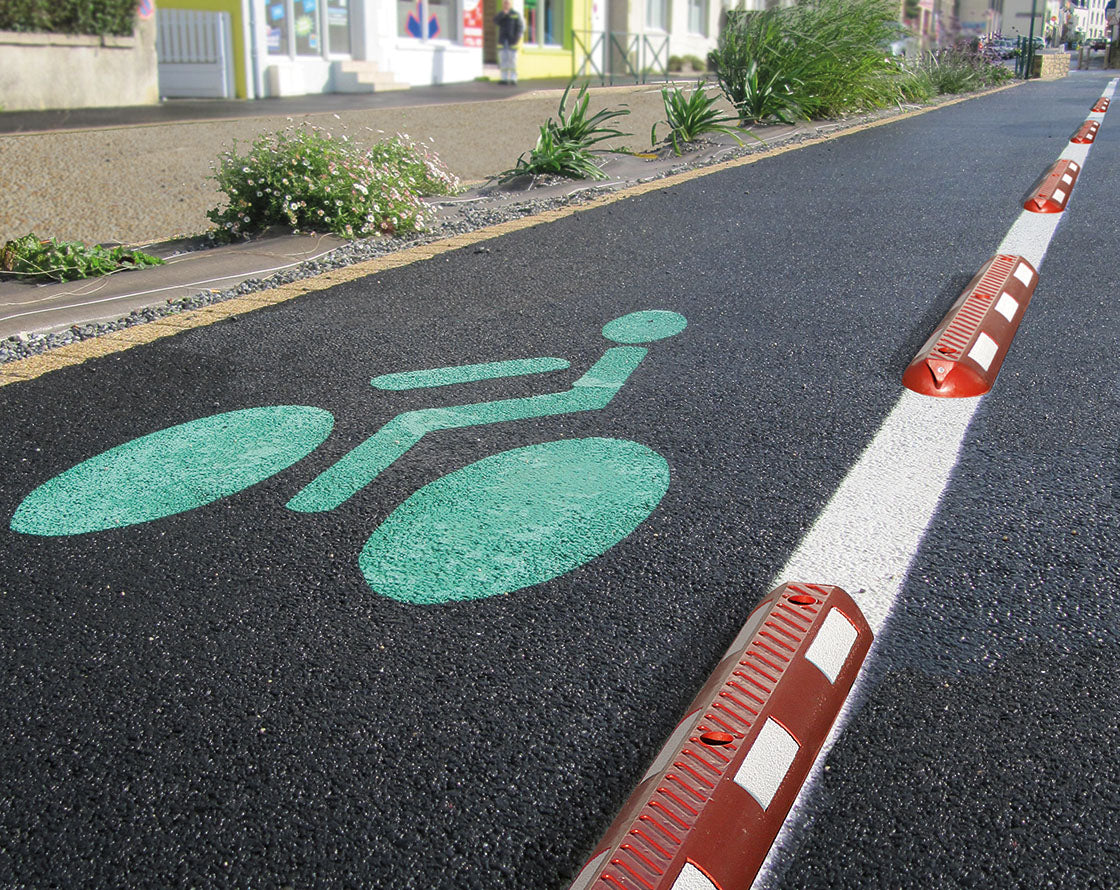 These lane separators are made from recycled rubber and are exceptionally easy to fit. They can be installed on cycle routes and other off-road areas as required to give a firm boundary between vehicles, cyclists and pedestrians. In large car parks, they can be placed between opposing traffic lanes or by ticket machines to mitigate the risks of collision.