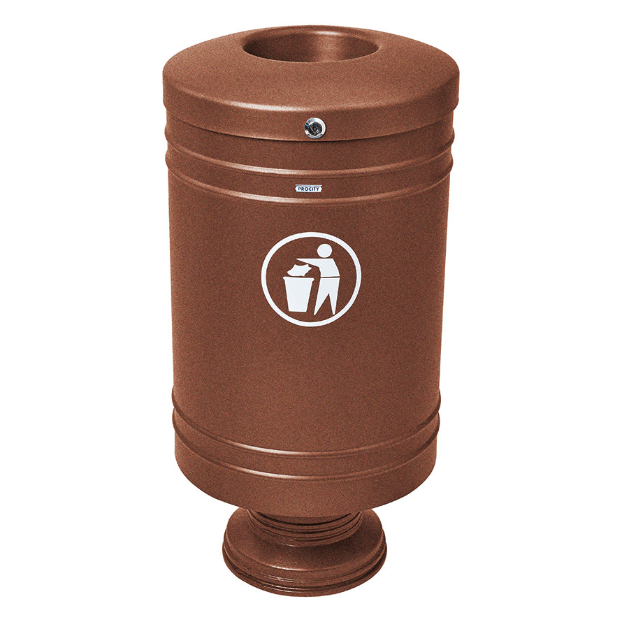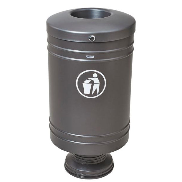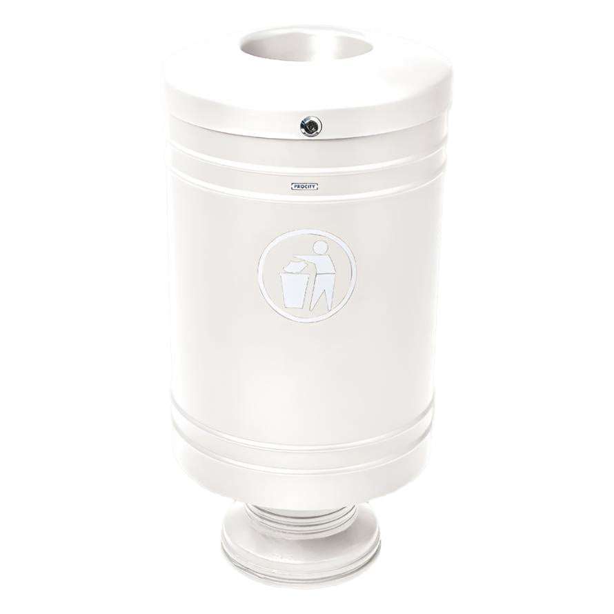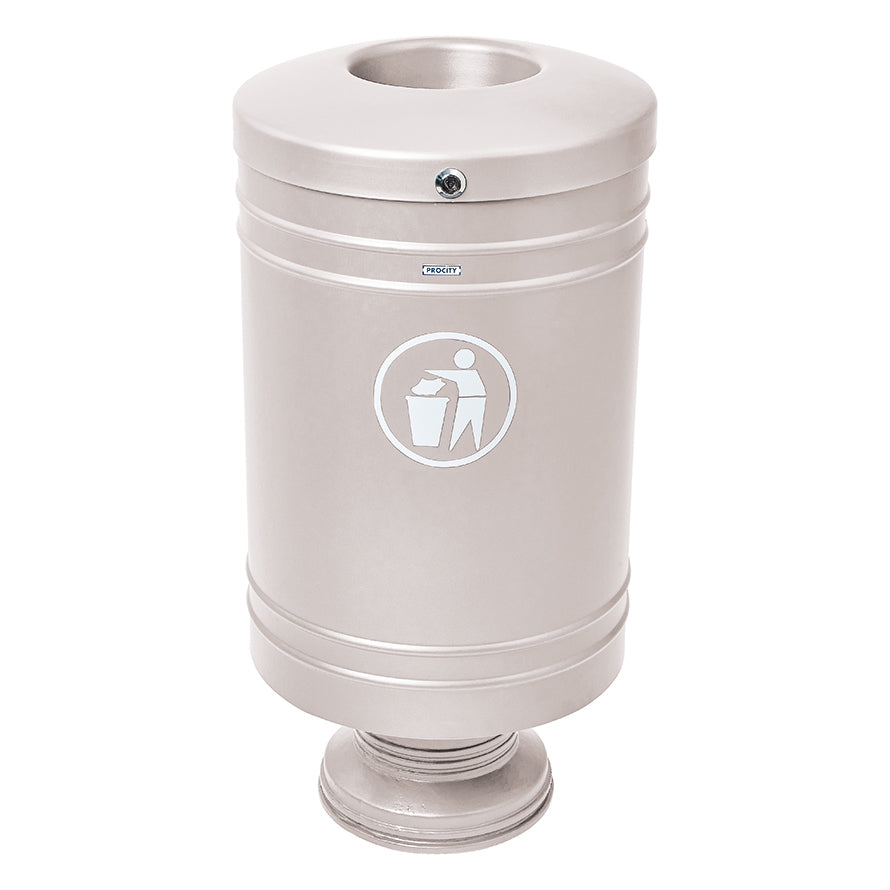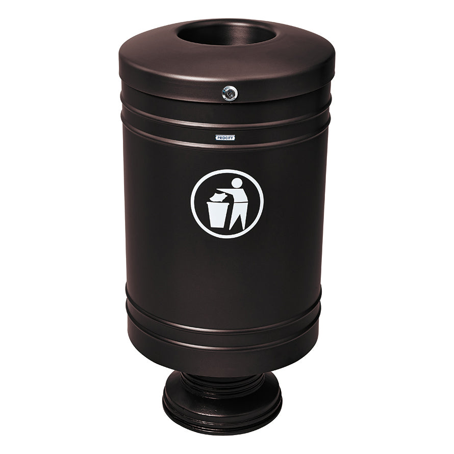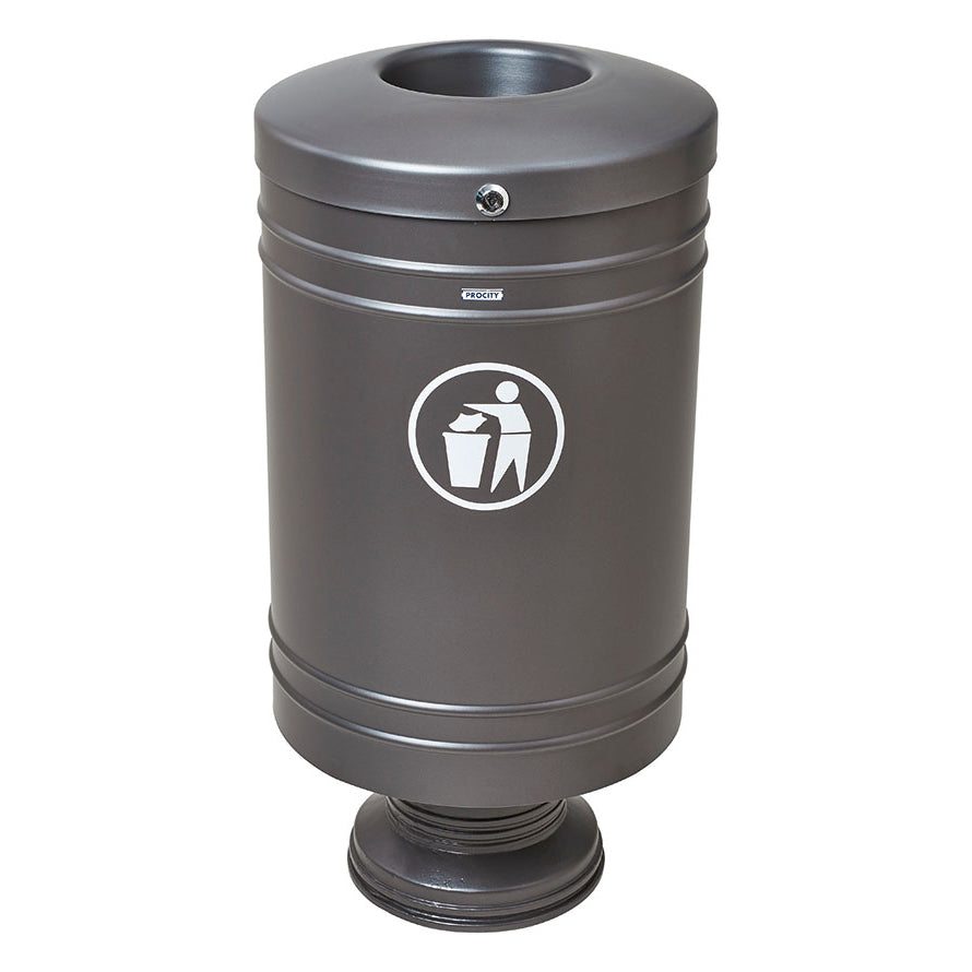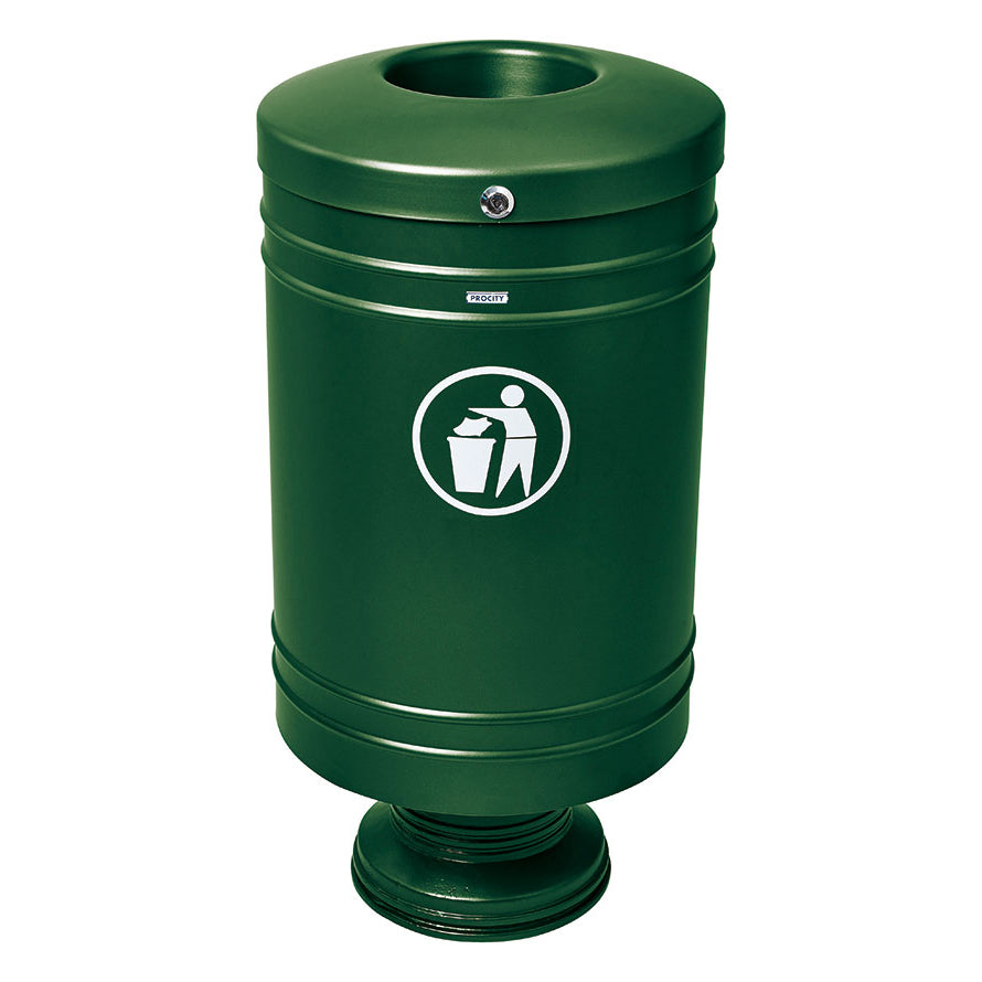 The Procity Litter Bin is a cost-effective, versatile little steel outdoor litter bin created to be installed on its cylindrical cast aluminium base. It features a specially designed, non-melting, self-extinguishing lid to improve fire safety and protect your space from unwanted bin fires that are known to spread quickly and aggressively.