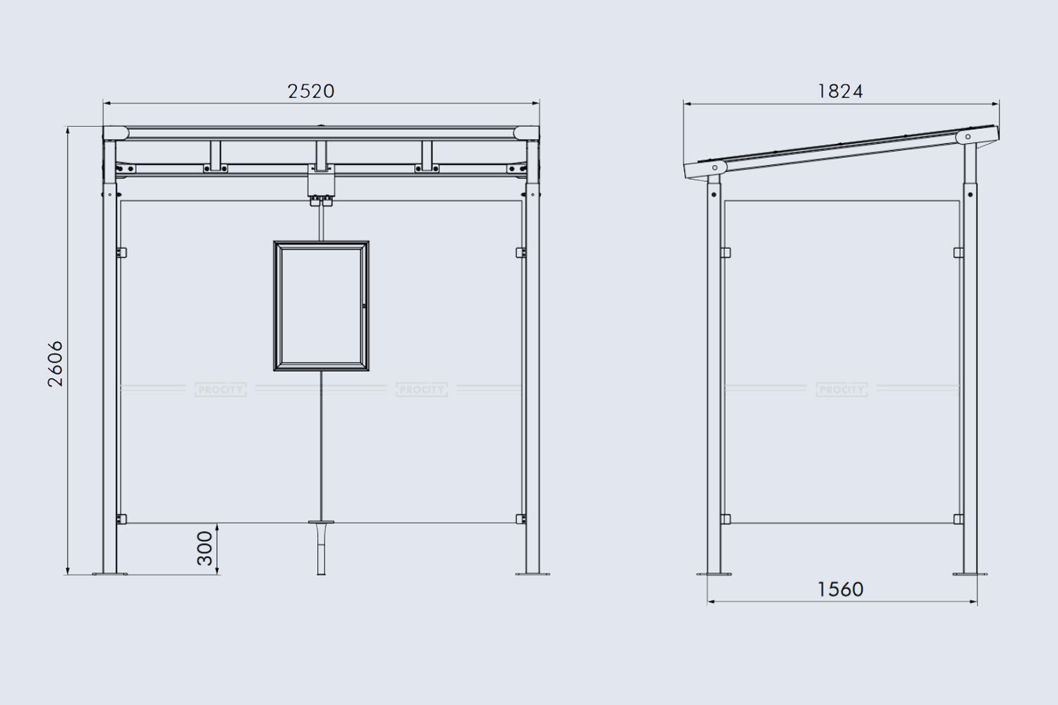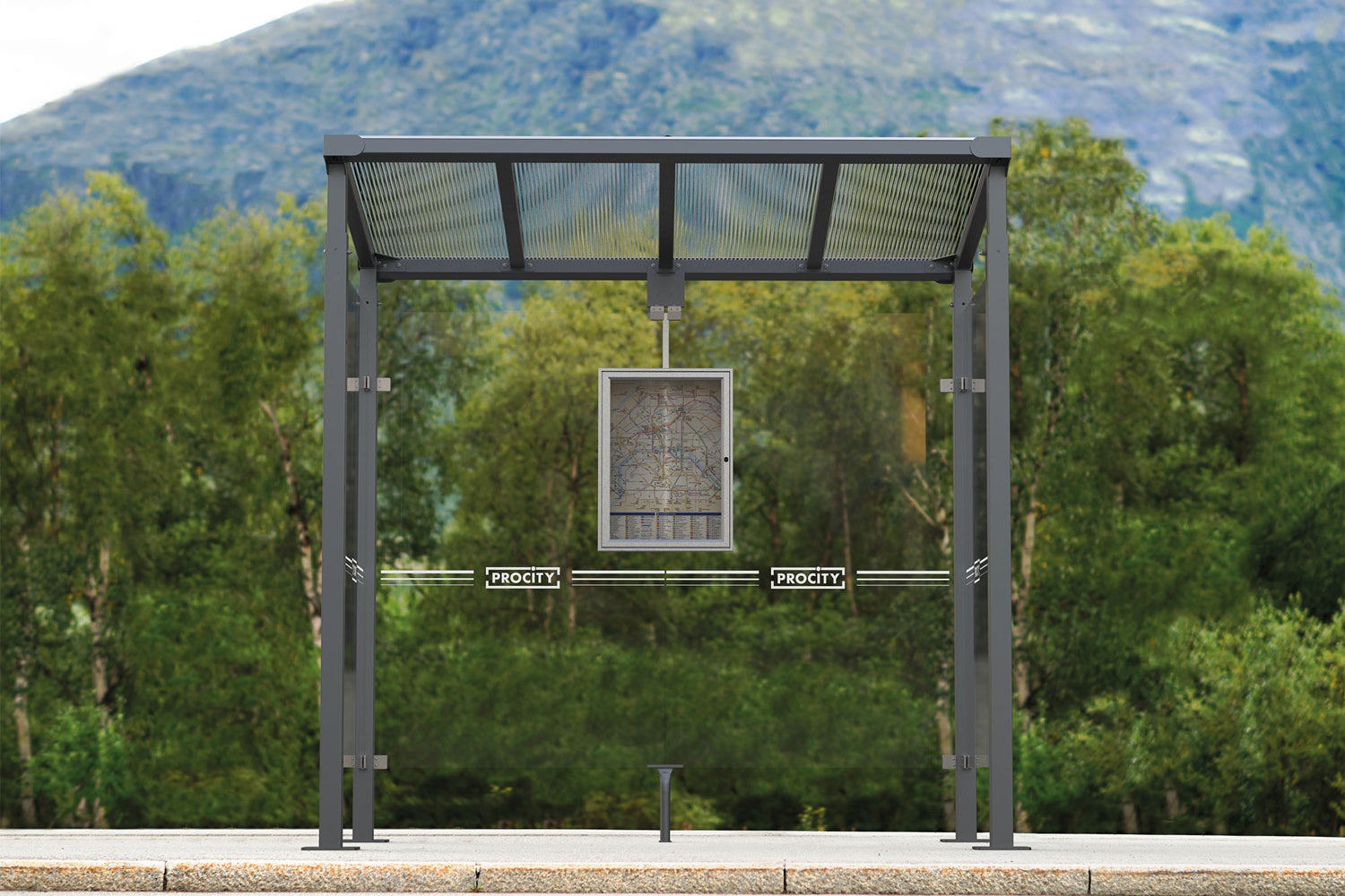 The Procity Milan bus shelter boasts the following accessories: