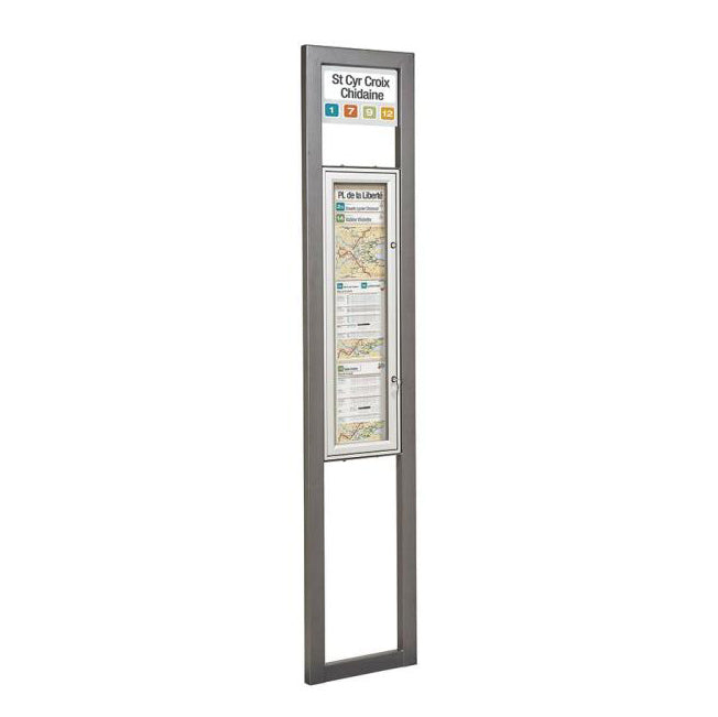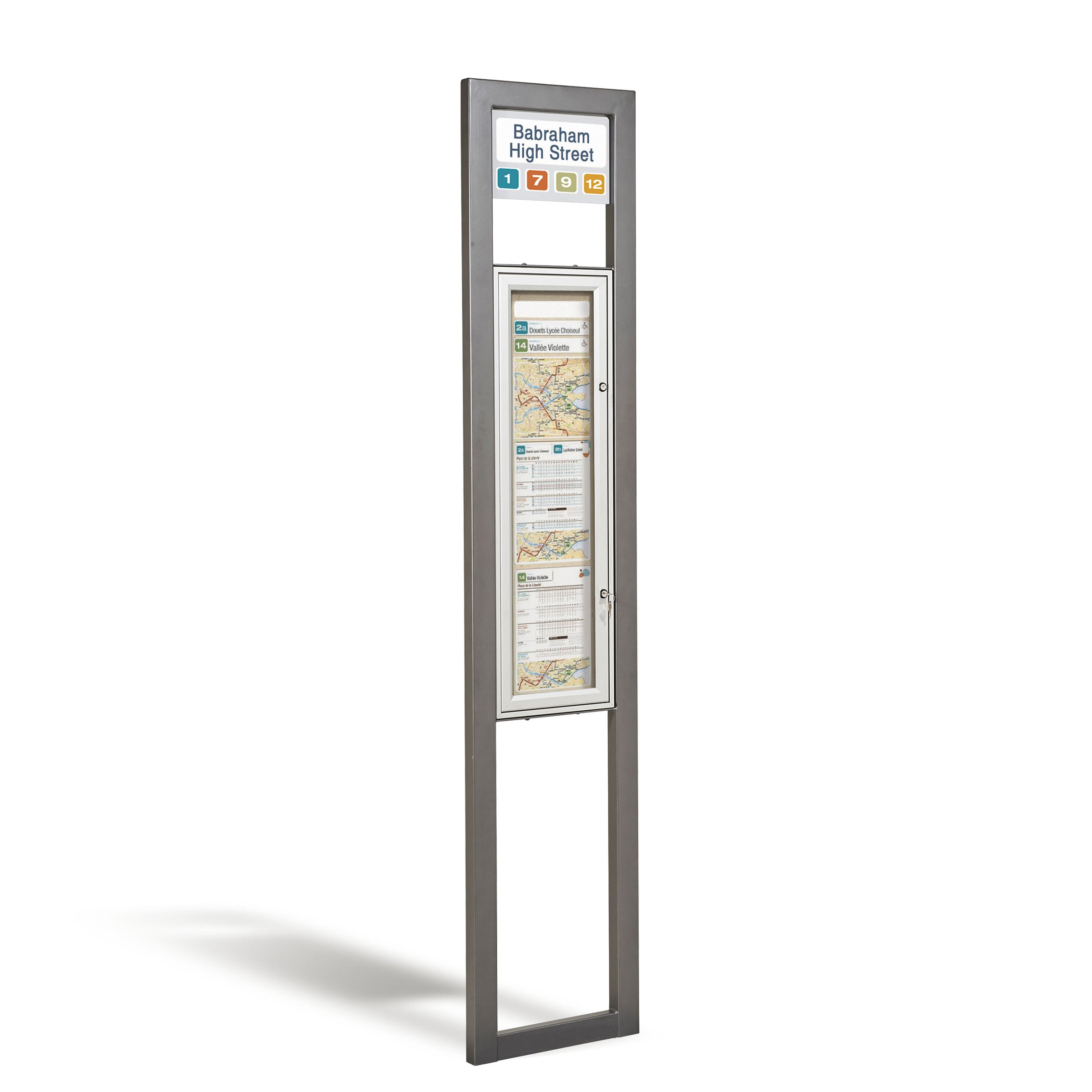 The Procity Milan Bus Stop Sign complements other street furniture items within the Milan collection, whilst remaining a perfect addition to any bus stop location. It features ample space for the stop name and route numbers on a galvanised blank steel sign at its top, with additional room for more detailed route information inside its case further down.