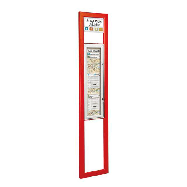 Whether standing alone to indicate the presence of a bus stop or paired with a bus shelter, this contemporary sign makes a bold statement and is easily visible for pedestrians and bus drivers alike.