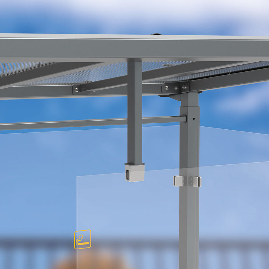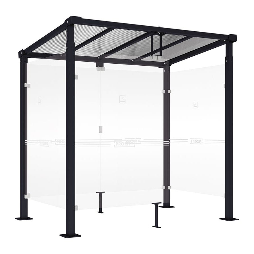 With its modern, elegant design, the Milan smoking and vaping shelter offers weather protection for smokers and vapers while allowing views into and out of the shelter thanks to its glass panelling. In accordance with Procity’s company values, this shelter’s roof is made of 10 mm anti-UV-treated translucent cellular polycarbonate panels to promote environmental responsibility.