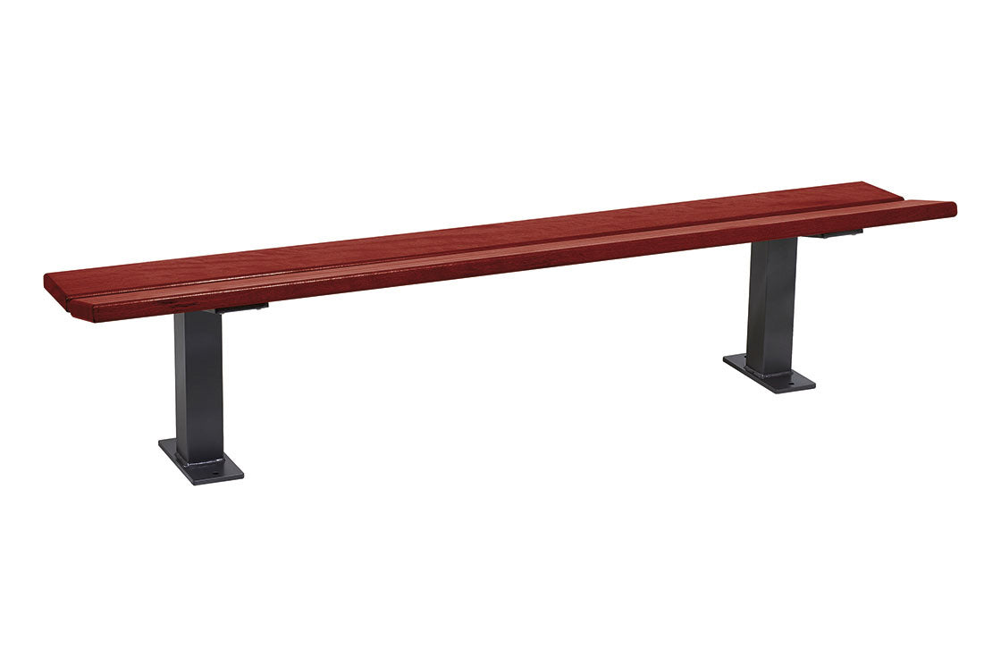 The seat of this bench is made using two slats gently angled towards each other, ensuring a natural and comfortable sitting experience. Constructed from exotic hardwood, and available in light oak or mahogany stain finish, this bench is built for long-term use. The wood requires treatment only once a year to maintain its durability and appearance. The frame, made from 80x80mm zinc primed tubing, can be coated in Procity's standard colours or in your preferred RAL colour, offering customisation options to suit your preference.