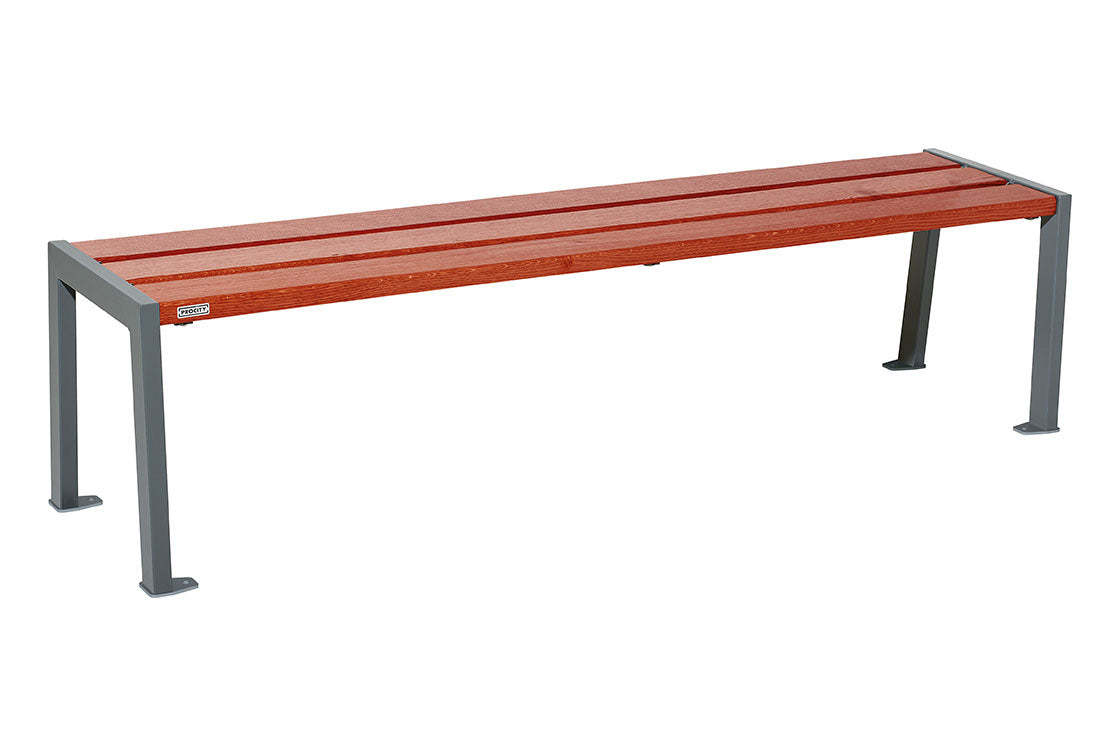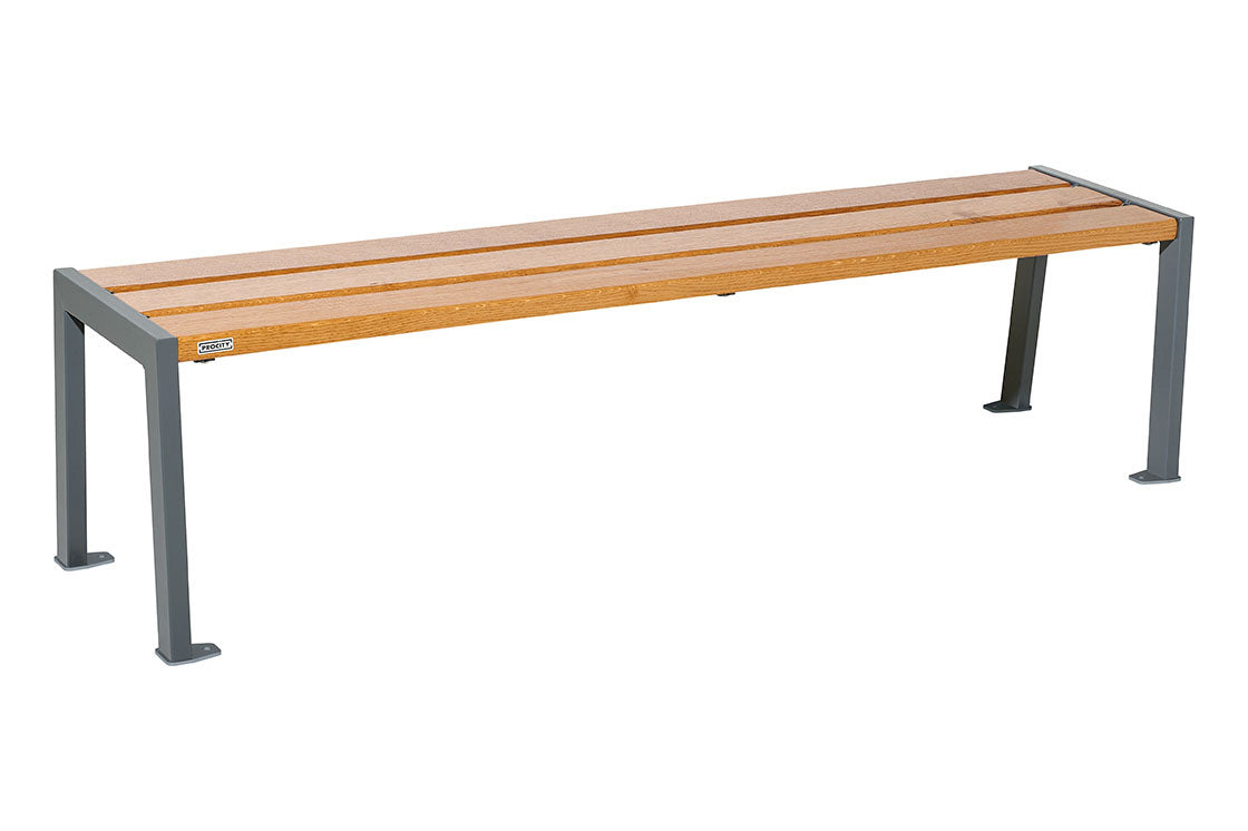 Available in two lengths, this bench is versatile in its application thanks to its modular length and lack of a backrest, and it can complement a range of different open spaces and green spaces. Bus Shelters, Smoking Shelters and other forms of inner-city Street Furniture all benefit from the introduction of backless or perch benches, and the Procity Silaos Backless bench is no different.