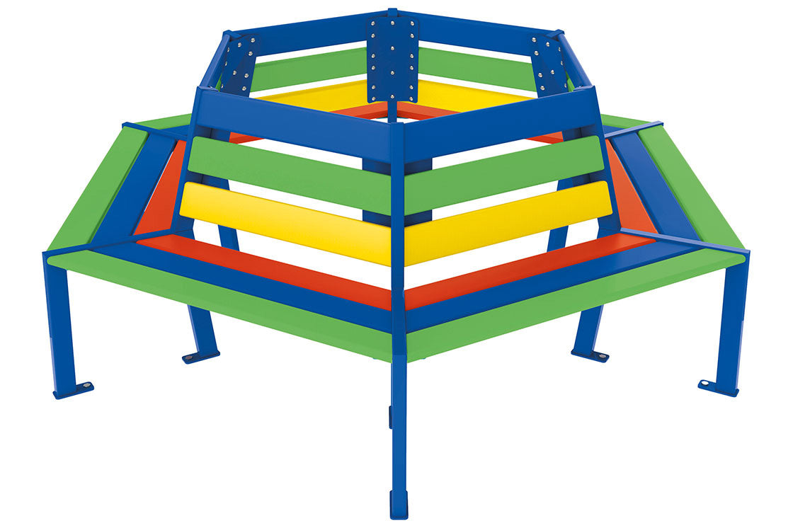 The Procity Silaos Junior Tree Bench is an octagonal seating solution created to be installed around trees in children's play areas. Specifically made for nursery and primary schools, this bench with its backrests is designed with a 2-metre external diameter (meaning it is 2m wide at its widest point), ensuring space for children to gather around and play.