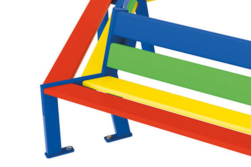 The bench features two different internal diameters to suit different age groups: the nursery school version with a 1240mm internal diameter and the primary school version with a 915mm internal diameter.