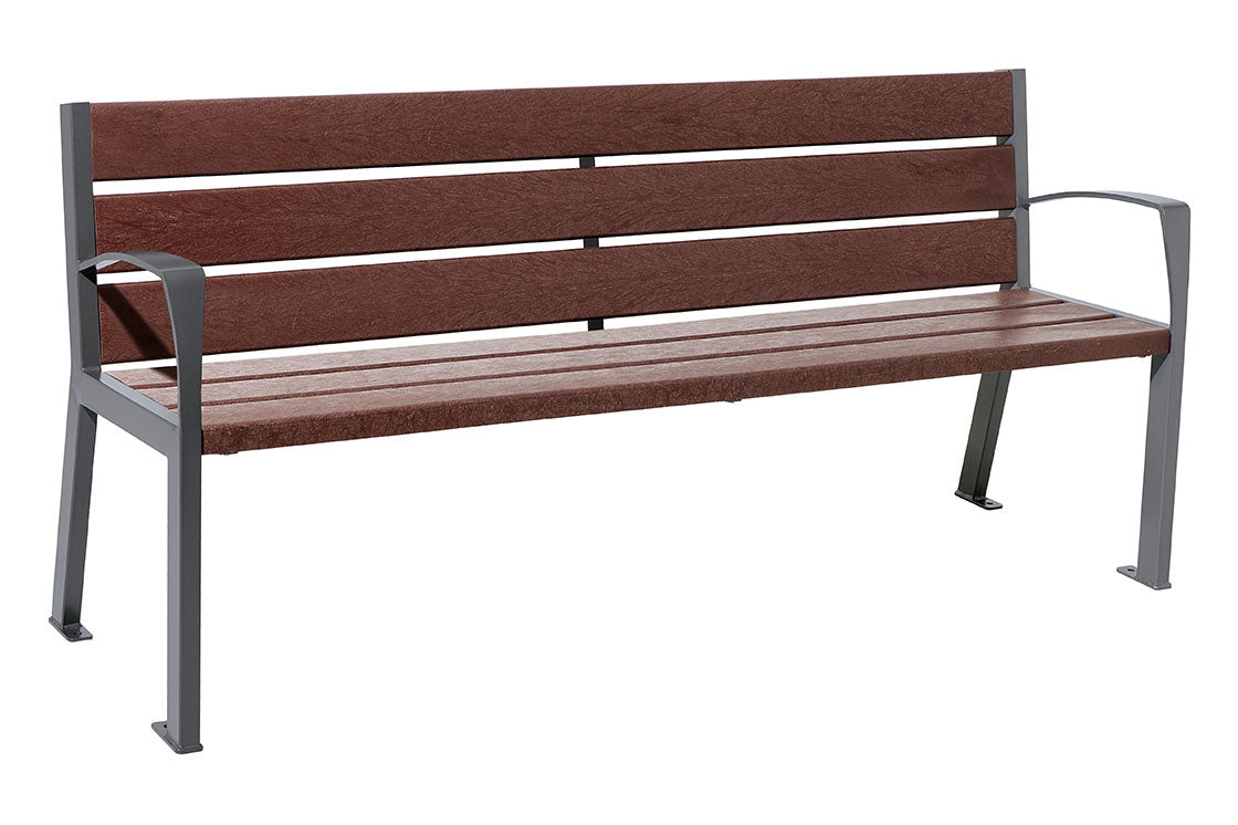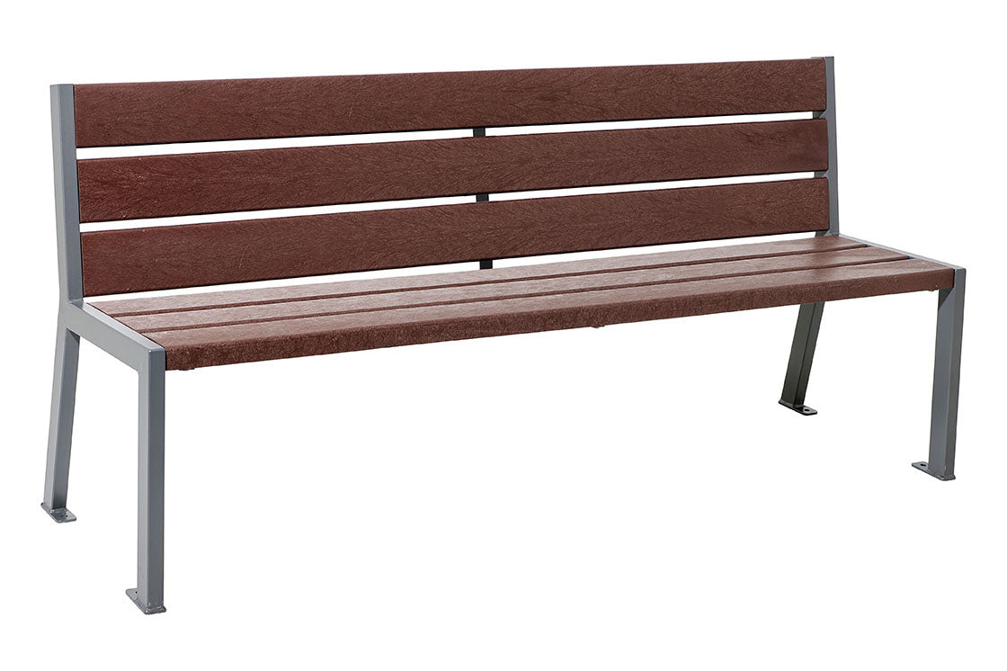In steel and recycled plastic, the Procity Silaos bench is durable against densely populated urban areas and year round adverse weather conditions all while remaining 100% maintenance free! Thanks to its material strength, once installed, this bench does not need any care or repairs. This bench is further reinforced with a galvanised steel frame (except the back rest).