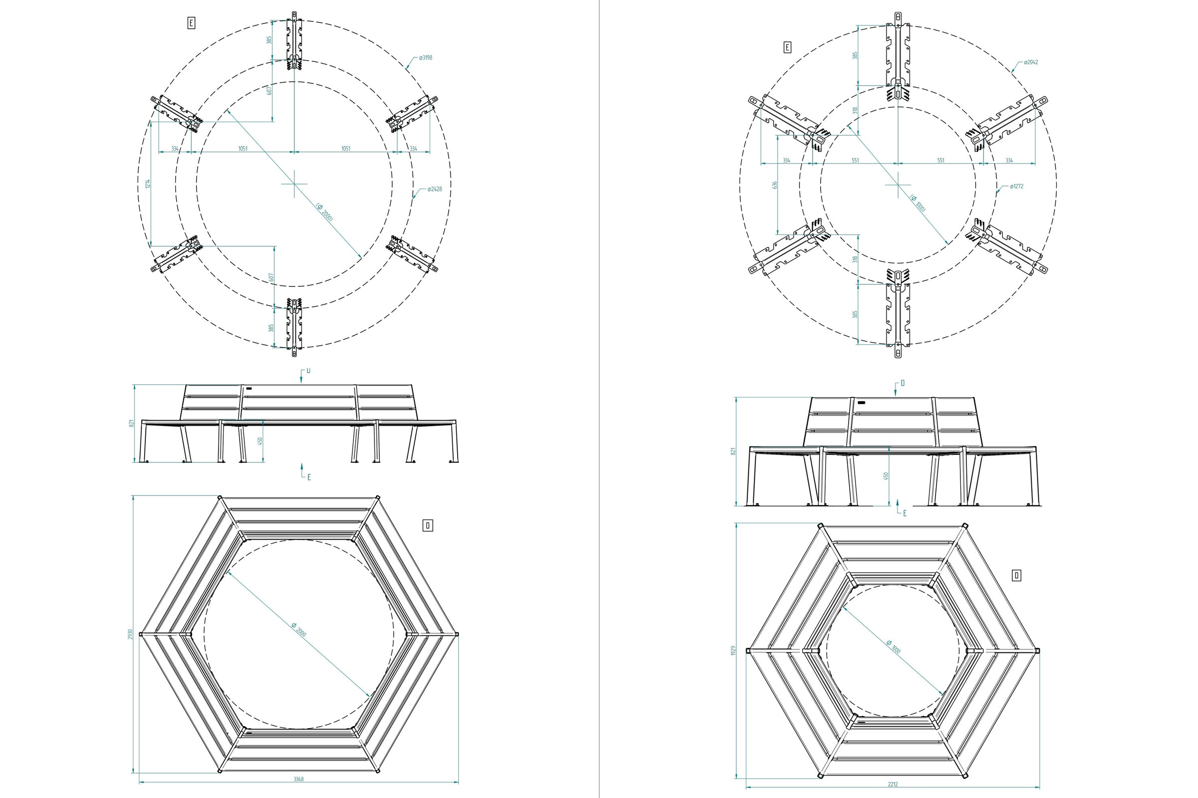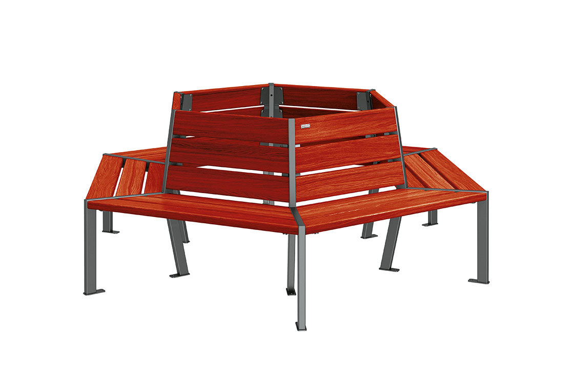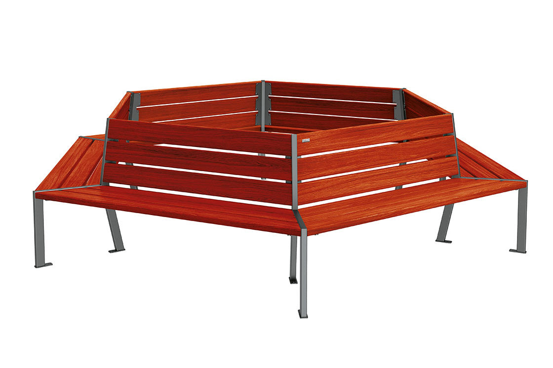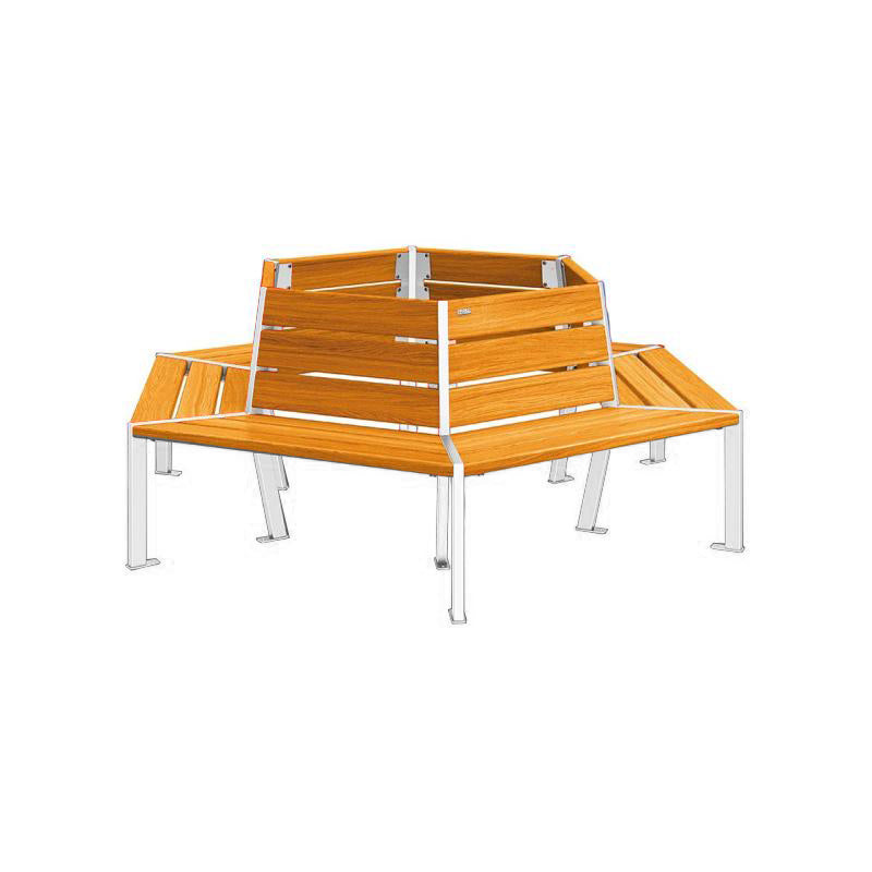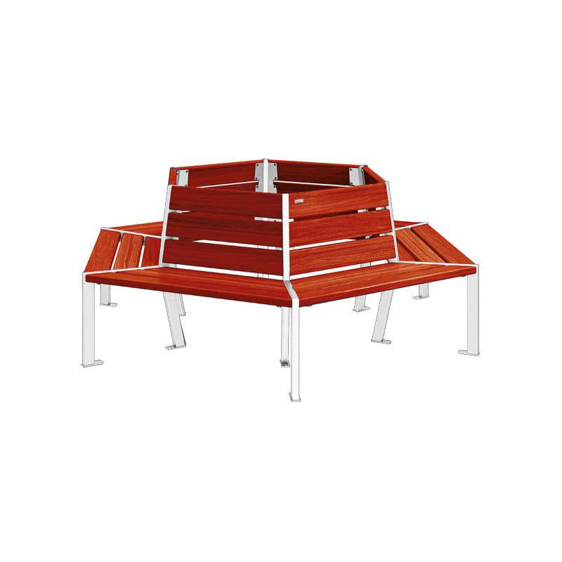 The bench boasts a zinc-primed and painted frame, guaranteeing both resilience against the elements and a sophisticated appearance. Its hexagonal shape adds a touch of uniqueness to any outdoor space.