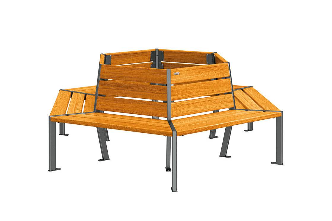Built on a frame of 30*50mm zinc primed and painted steel tubing and 36mm thick PEFC-certified oak, the Silaos Tree Bench offers the option to be painted in either the standard Procity colours or a colour of your choice from the RAL palette (please call us to let us know).