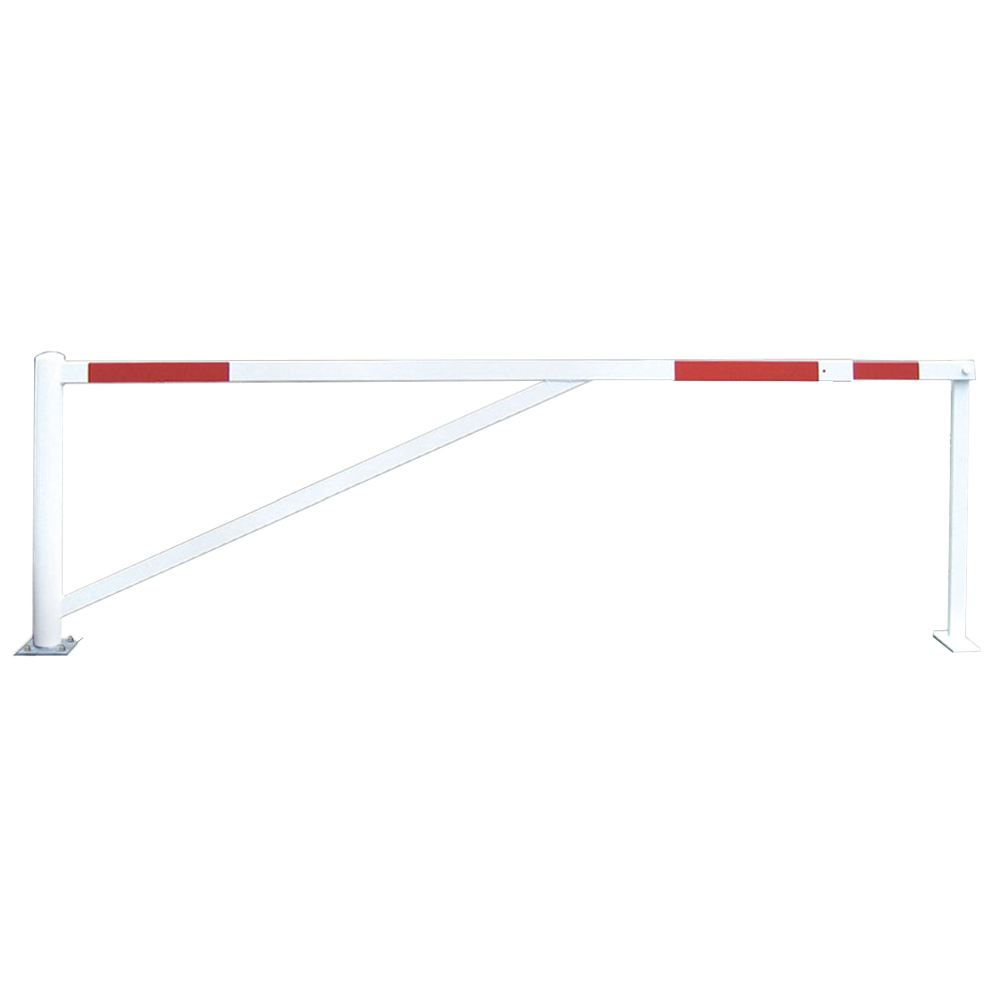 This huge swivel barrier can accommodate up to 10 metres of road width! It comes with two support chains to prevent the boom from sagging. It is also adjustable for fine-tuning.