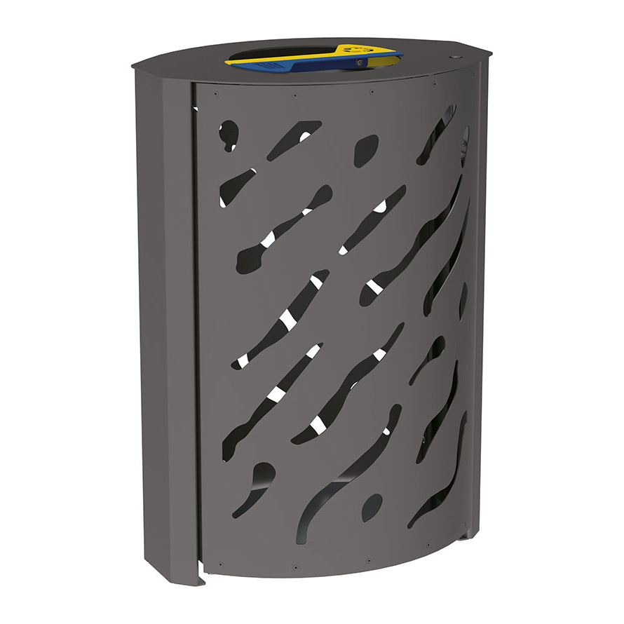 The rubbish bin’s two compartments are colour-coded for easy waste sorting - yellow for recyclables and blue for landfill waste. While these colours are available as standard, customisation is possible, allowing alignment with local recycling standards.For specific colour requests, please reach out to us during the ordering process.