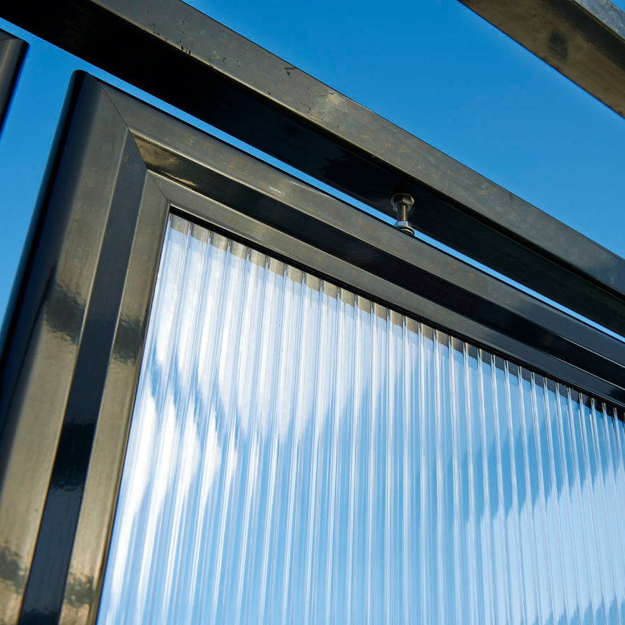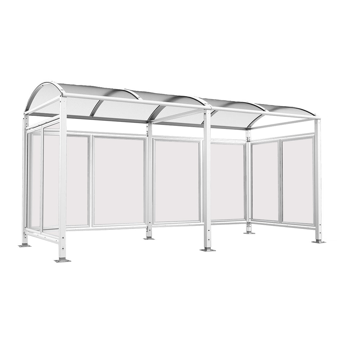 This shelter makes extensive use of polycarbonate rather than PET for maximum durability and safety. Extensions are available for limitless expansion.