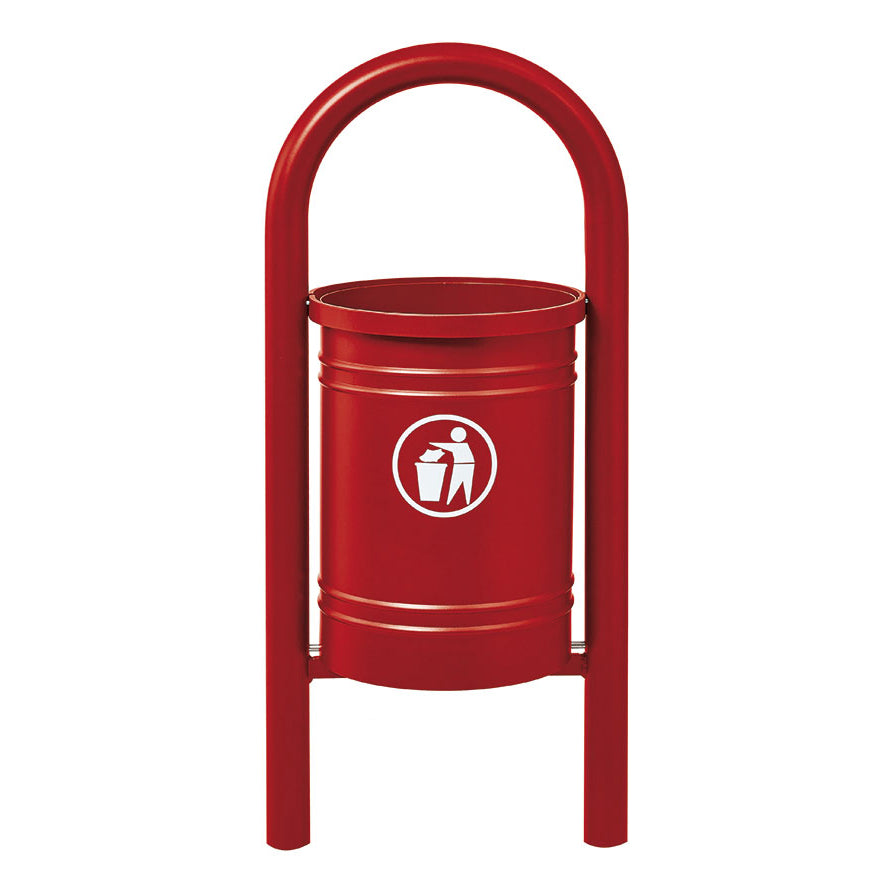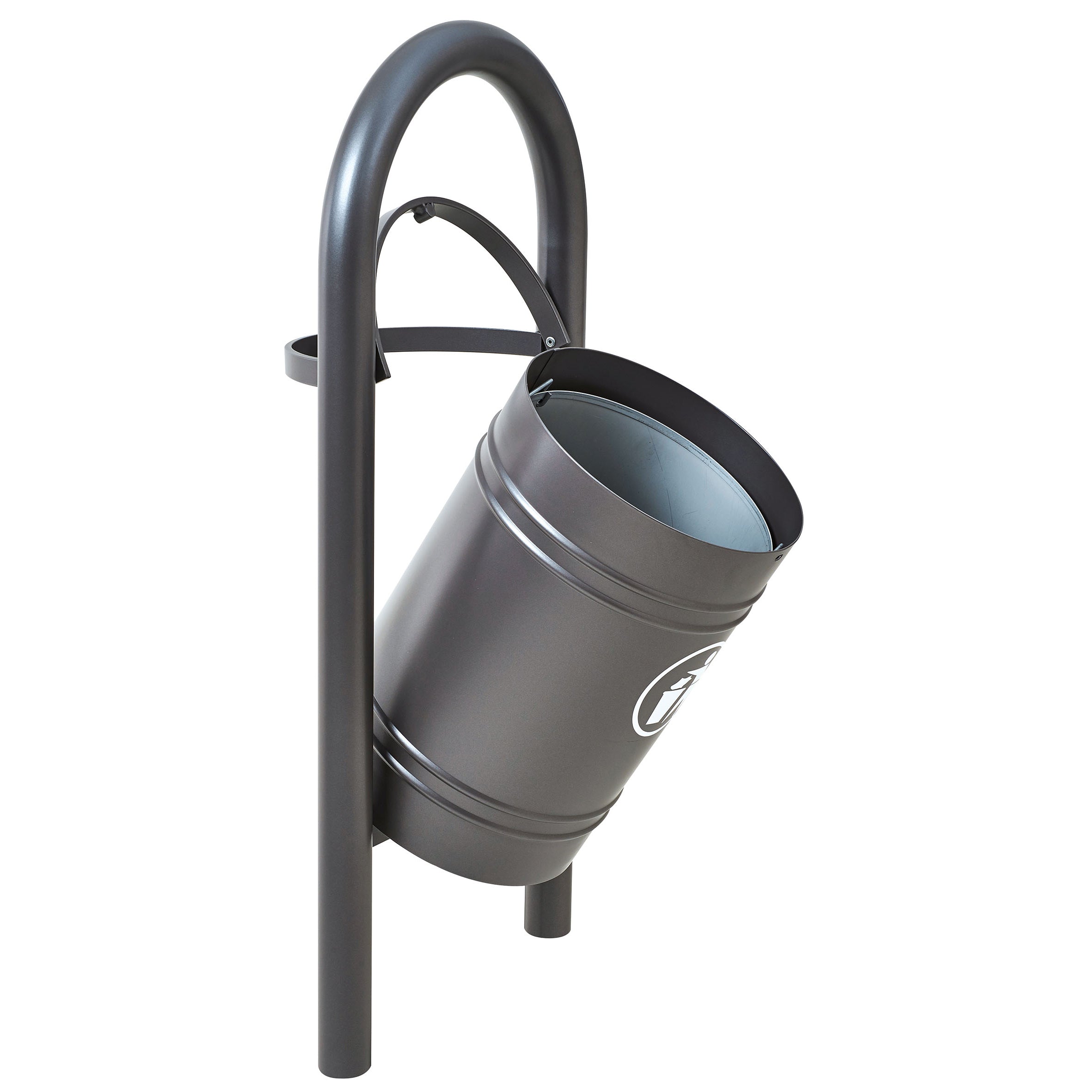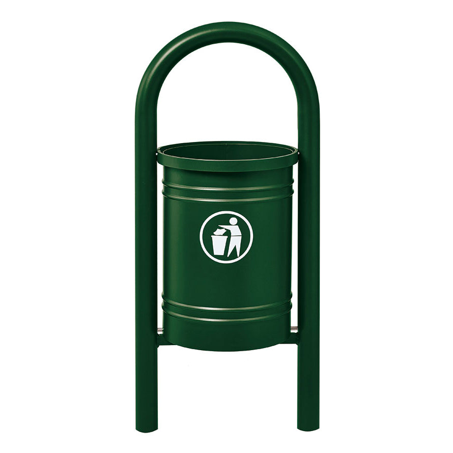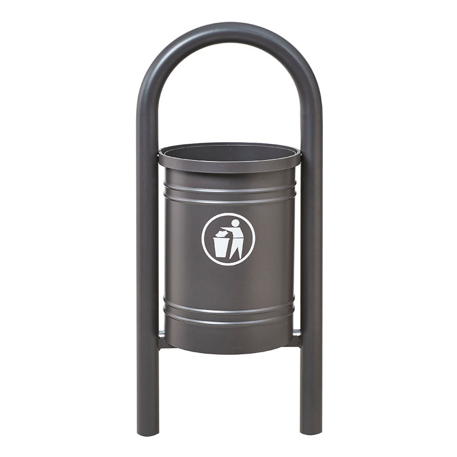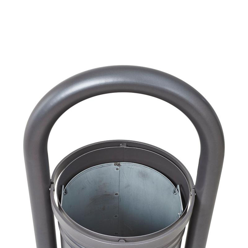 With a modest 40L capacity, this outdoor dustbin is suitable for lower footfall areas or requires a more frequent emptying schedule. The ingenious emptying mechanism is straightforward to use and helps streamline maintenance and emptying: the top is secured by two horizontal flat steel semi-circles, allowing the rubbish bin to tip 45°.