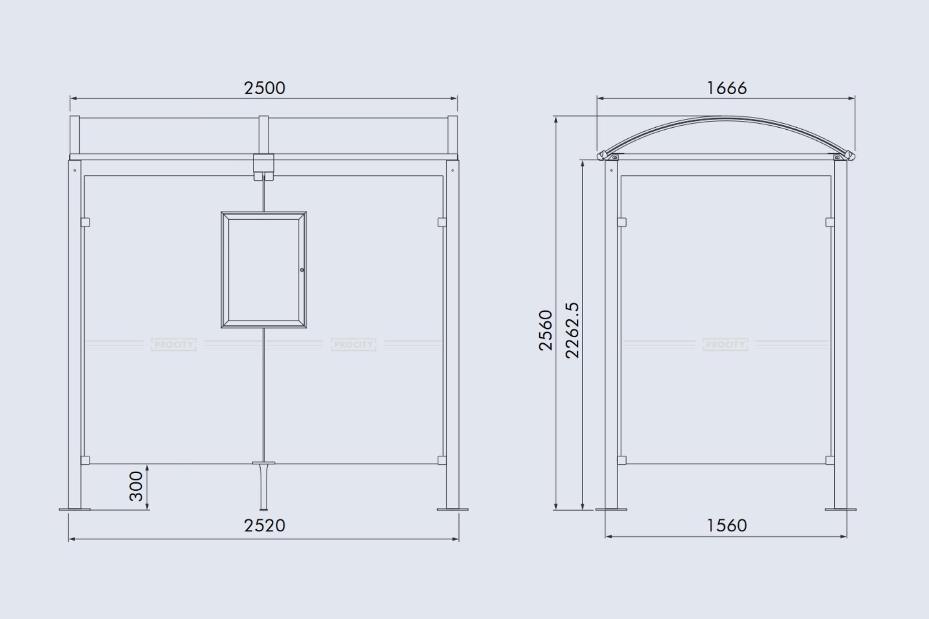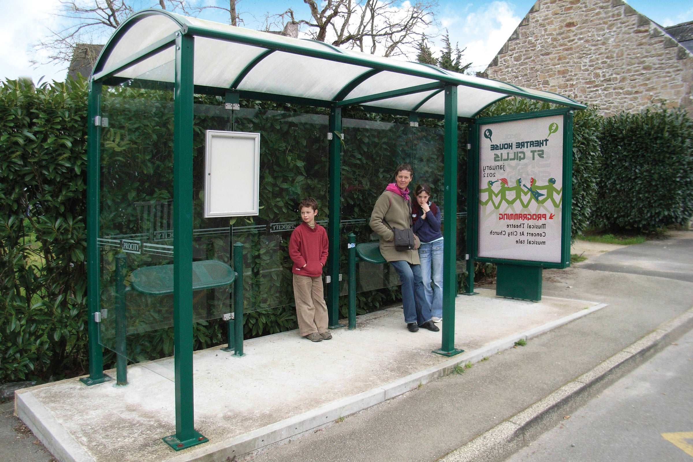 Every model is delivered with rear cladding and a timetable display case.The Procity Voute bus shelter boasts the following accessories: