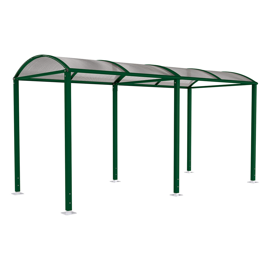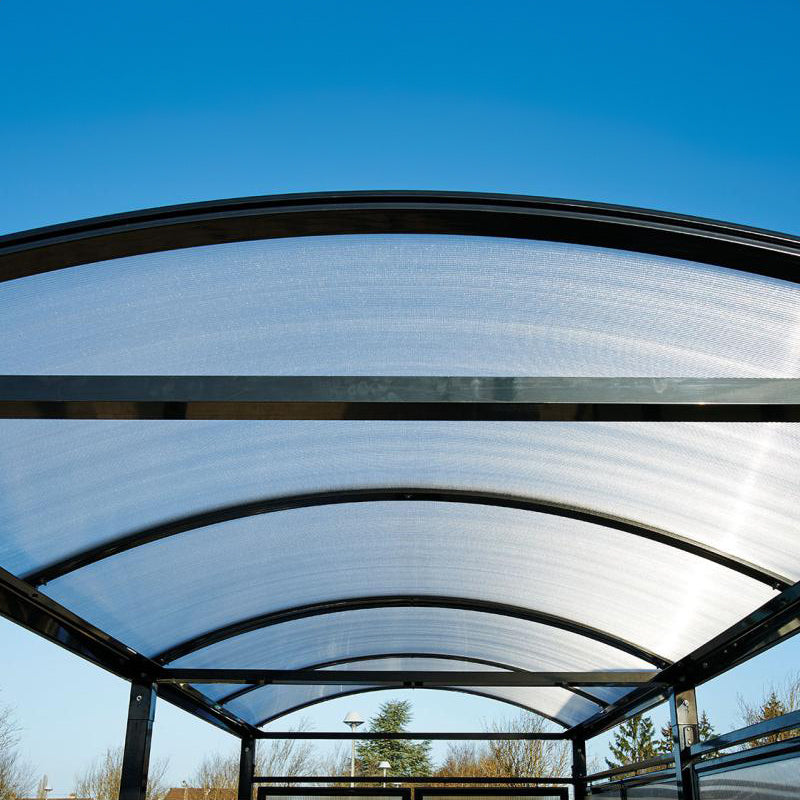 Side cladding panels are available for this shelter if required. The transparent side and roof panels come complete with coloured frames, and are made from a 10mm anti UV polycarbonate.