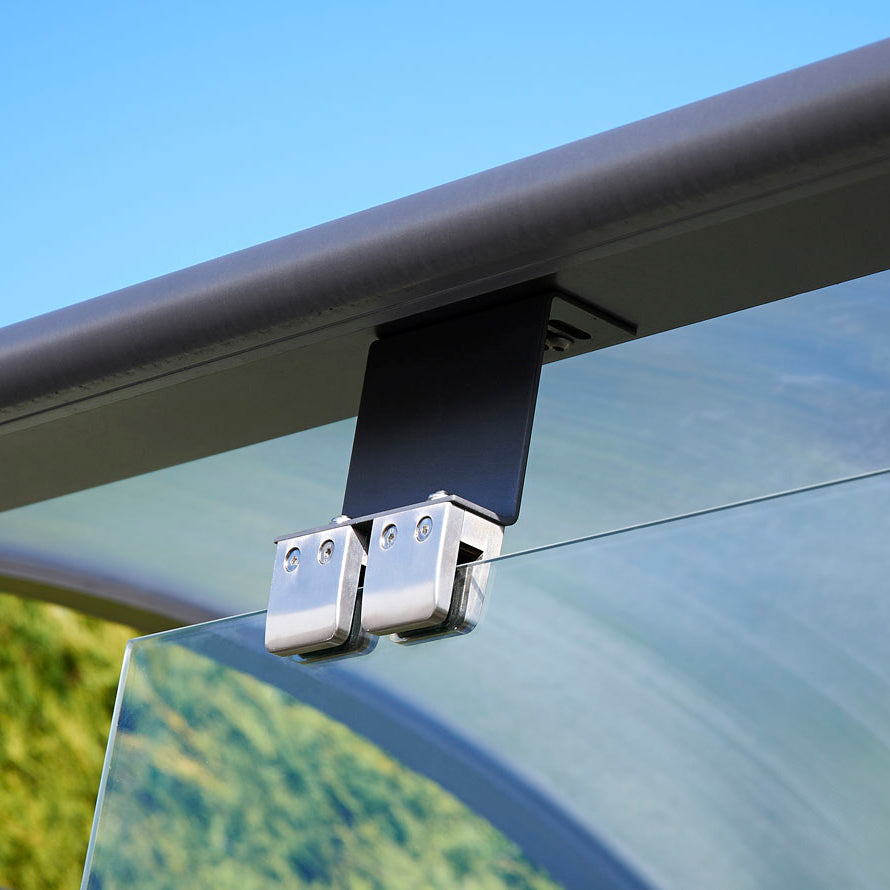 A 2.4m variant adheres to UK smoking shelter regulations, mirroring the other designs but lacking the wrap-around front panel. This intentional omission guarantees that 50% of vertical surfaces stay open in accordance with regulations while still providing a covered space protected from wind and rain.