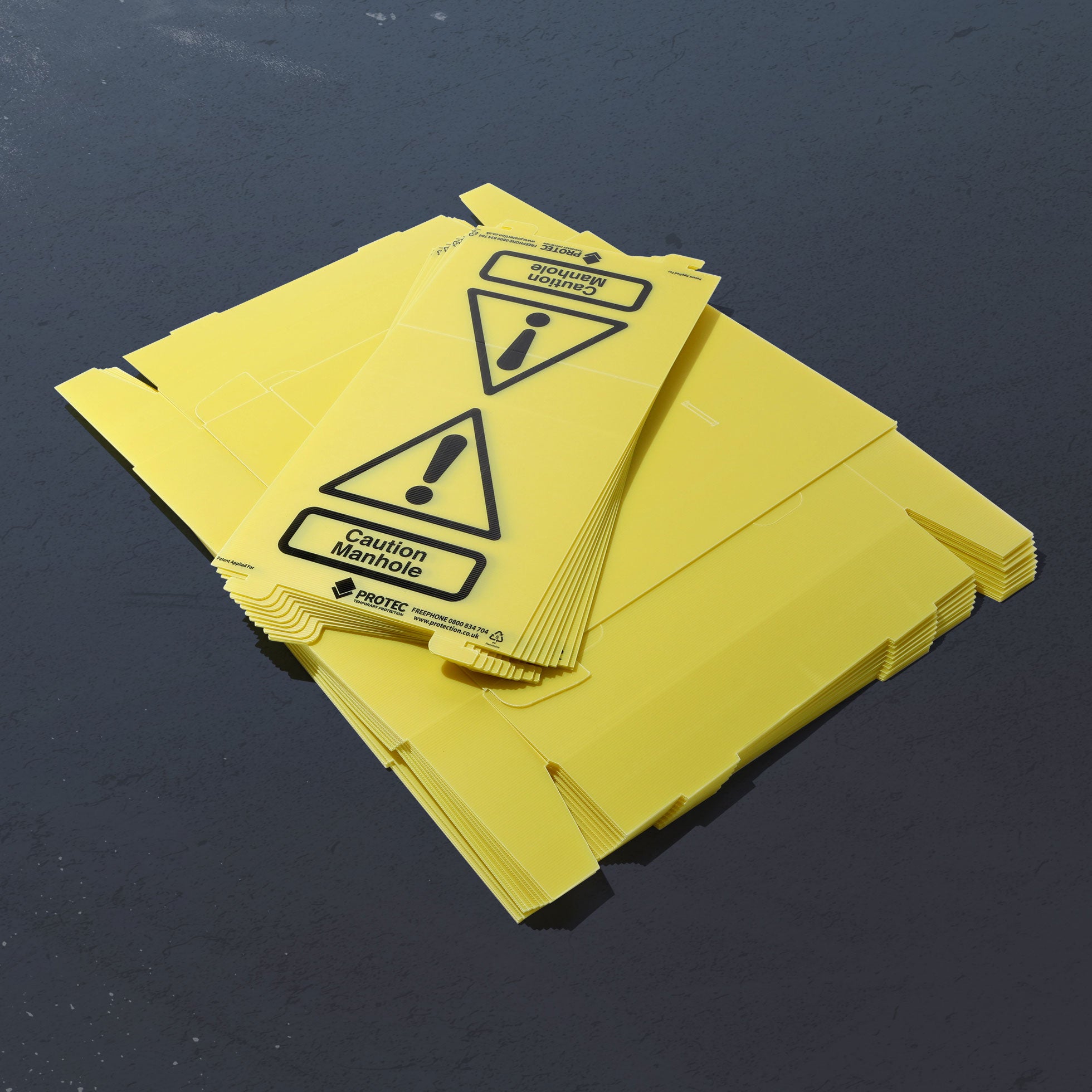 Construction sites see manholes installed early but permanent covers fitted last, leaving dangerous openings exposed to heavy plant, vehicles, and foot traffic for months. These temporary warning protectors/covers are bright yellow to catch your crew's eye, visible enough to alert site traffic of the trip hazard, while keeping your drainage systems clean and debris-free. The 600mm x 600mm option comes with a caution sign plate that can be slotted in the top.