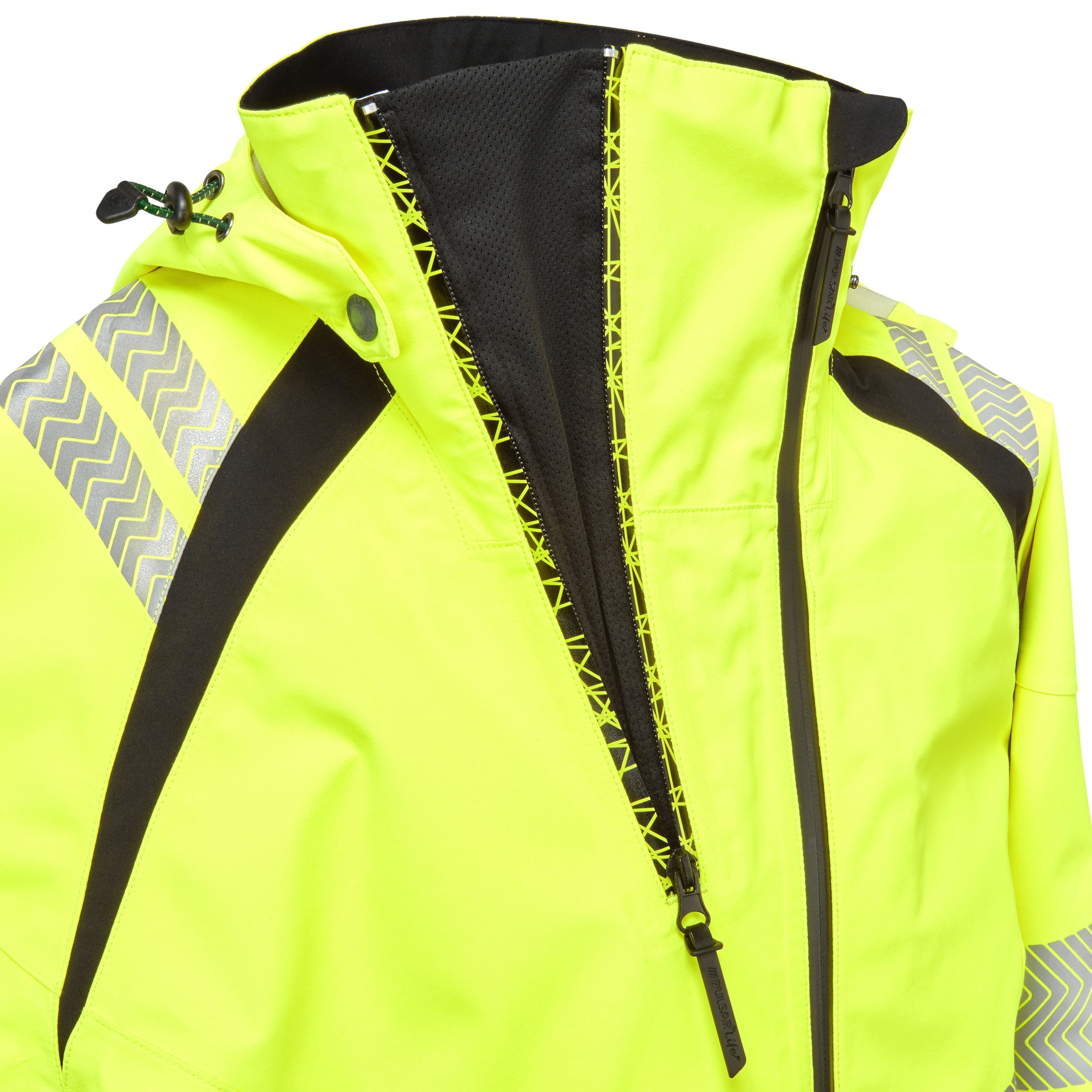 The life range is packed with green features that make it the only choice if you want to keep your environmental footprint as small as possible while still being seen safely at work. This jacket is made from 80% GRS recycled polyester, it is windproof, waterproof and still breathable; it meets the requirements of EN343:2019 Class 4:4:x with a score of 4 being the highest for waterproofing and breathability. This stops rain from getting in and allows perspiration to get out, keeping you dry at all times.