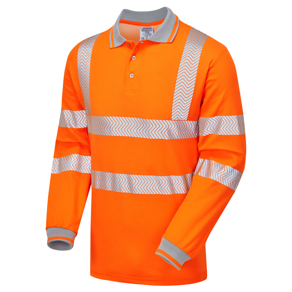 Pulsar Life Mens Rail Spec Hi Vis Orange Long Sleeved Polo Shirt LFE926-NB