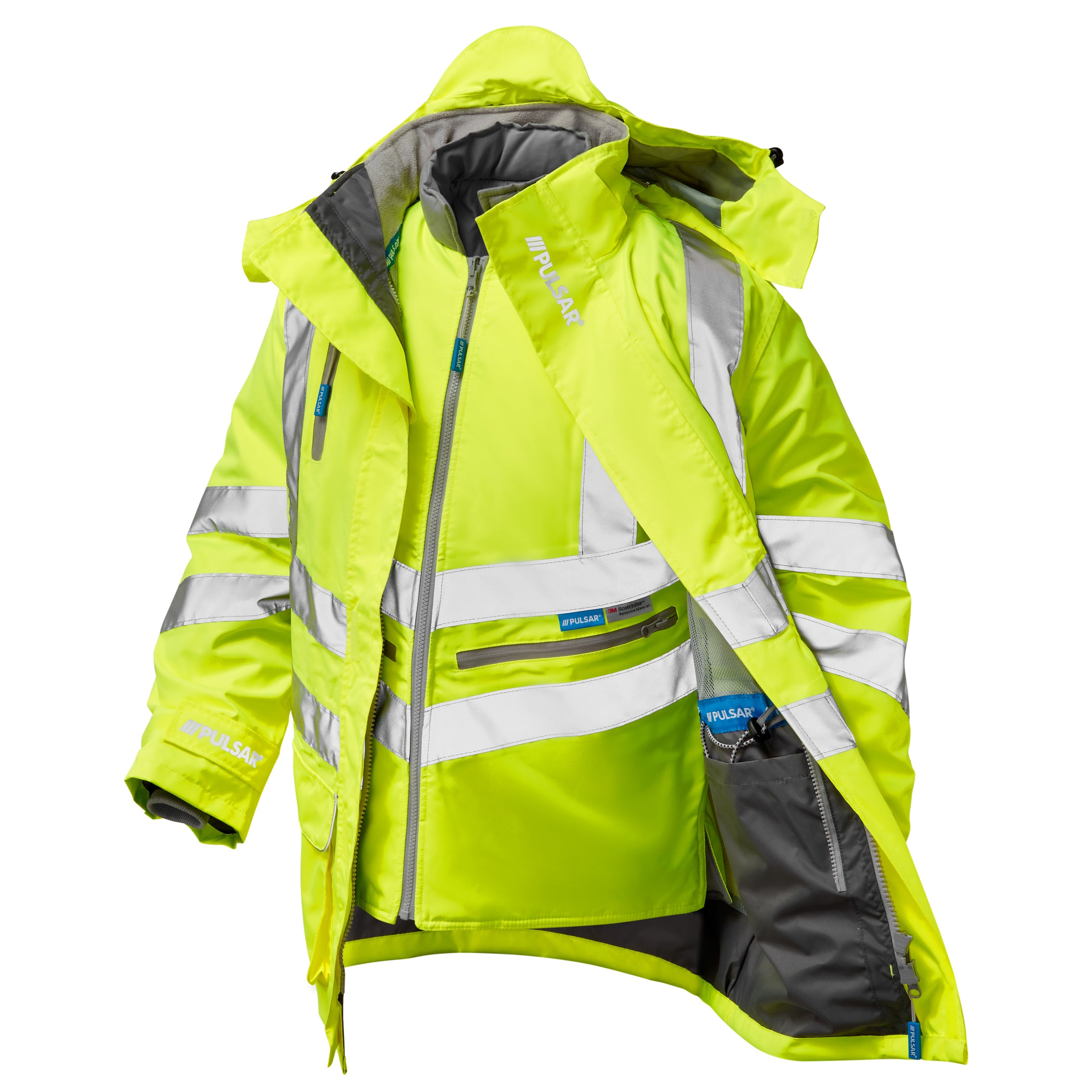 Pulsar Protect Hi Vis Yellow Waterproof 7-in-1 Storm Coat & Body Warmer P487