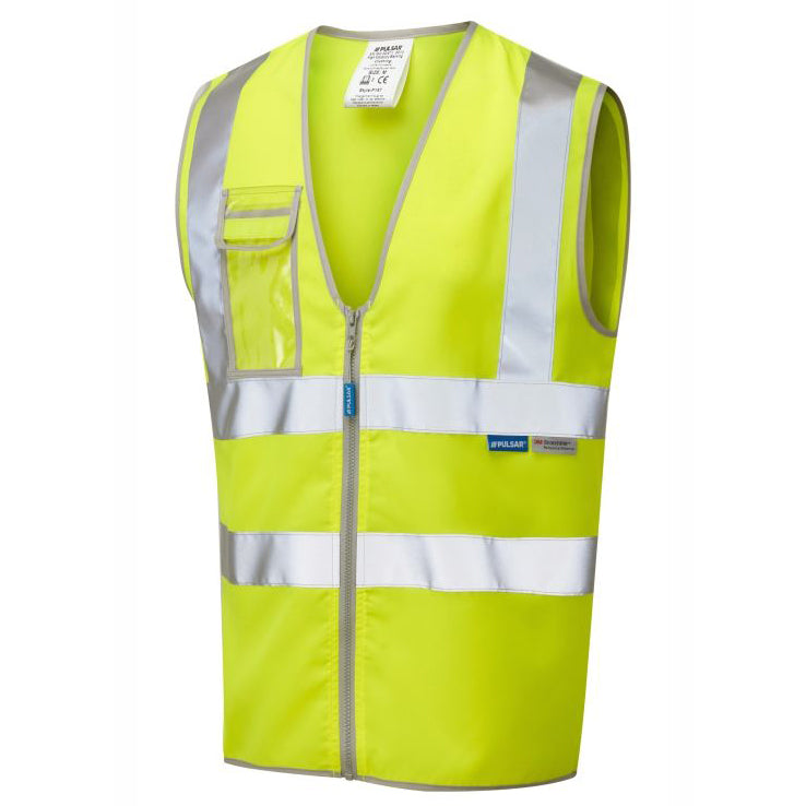 This Hi Vis Vest is ideal for use on sites where high-visibility clothing is required. This premium vest from PULSAR features a zip at the front, which is unique in hi-vis vests. The zip helps ensure a secure fit, preventing the vest from riding up, coming undone or getting caught.