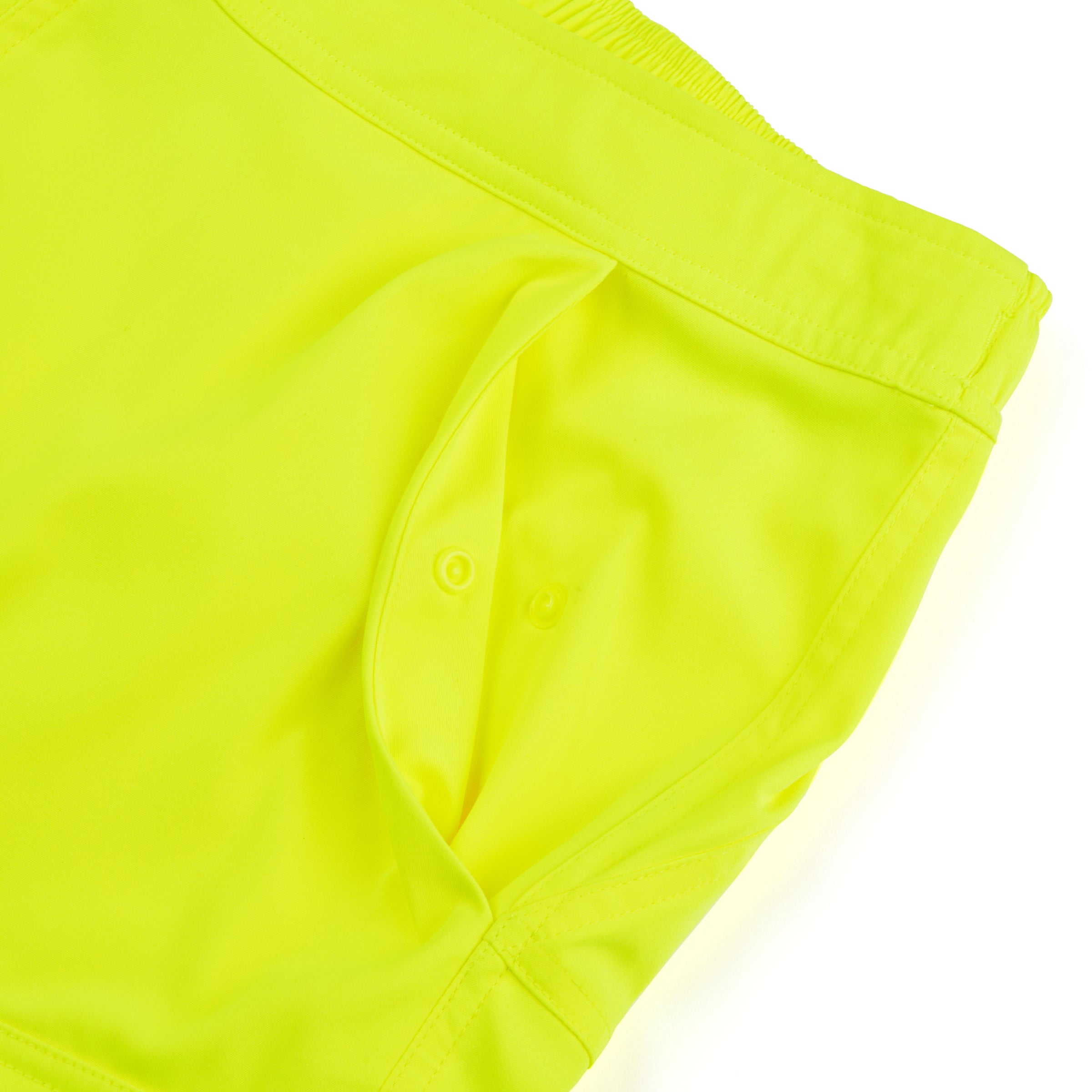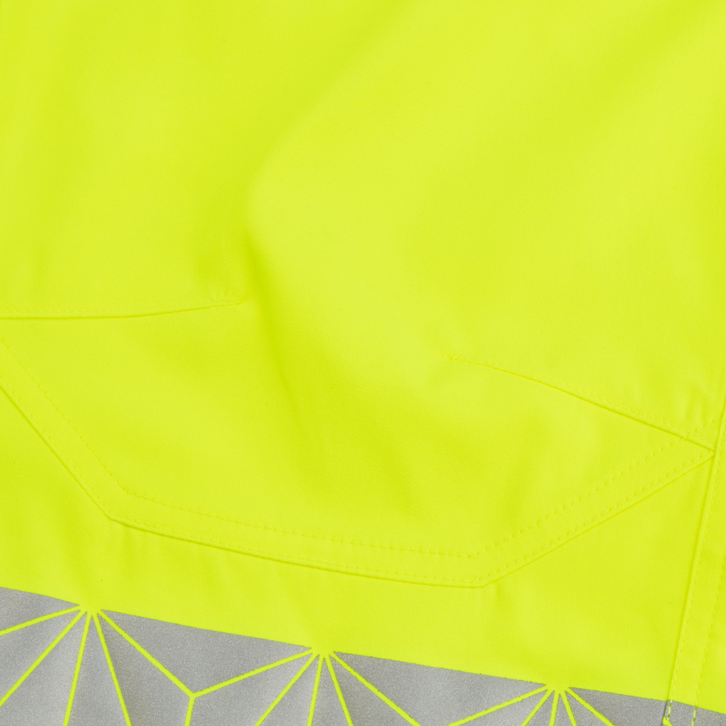 These yellow trousers come with two colour options: solid yellow or yellow with Grey contrast panels. These contrast panels are ideal for areas where the front of the trousers quickly becomes dirty. The panels mask the dirt, allowing for longer periods between washes, which in turn extends the lifespan of the garment. This garment is certified for 25 washes while maintaining its luminosity and reflectivity ratings.