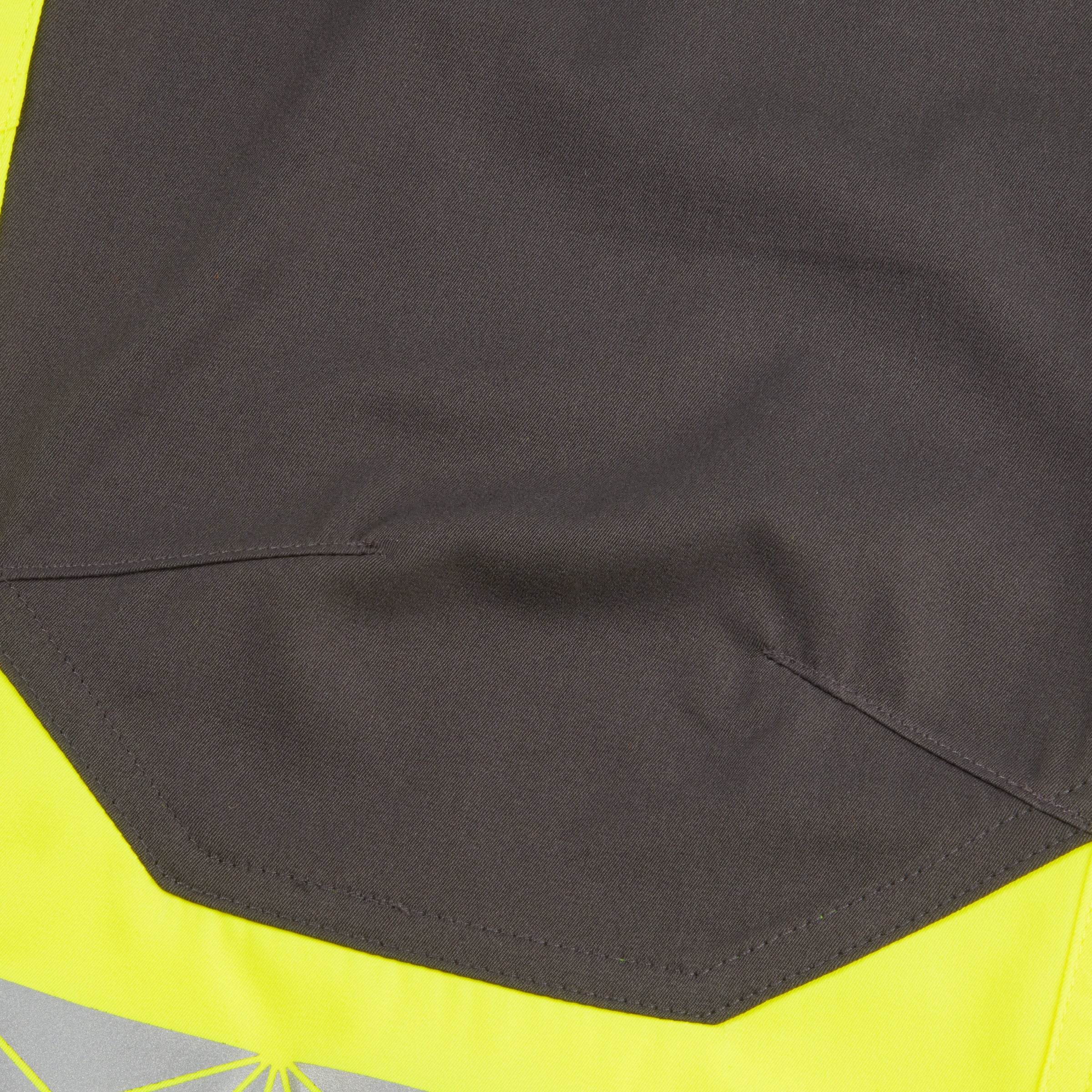 These yellow trousers come with two colour options: solid yellow or yellow with Grey contrast panels. These contrast panels are ideal for areas where the front of the trousers quickly becomes dirty. The panels mask the dirt, allowing for longer periods between washes, which in turn extends the lifespan of the garment. This garment is certified for 25 washes while maintaining its luminosity and reflectivity ratings.