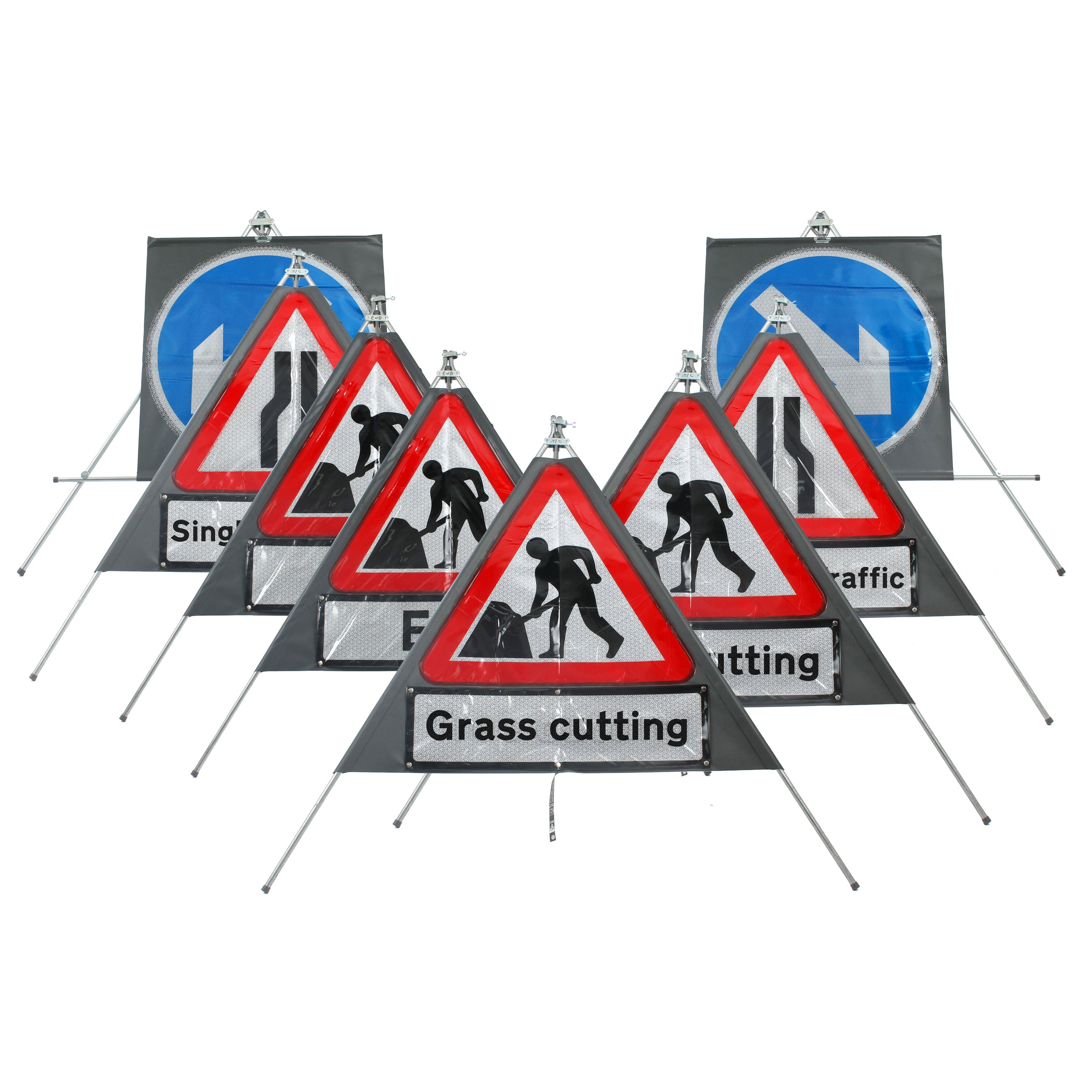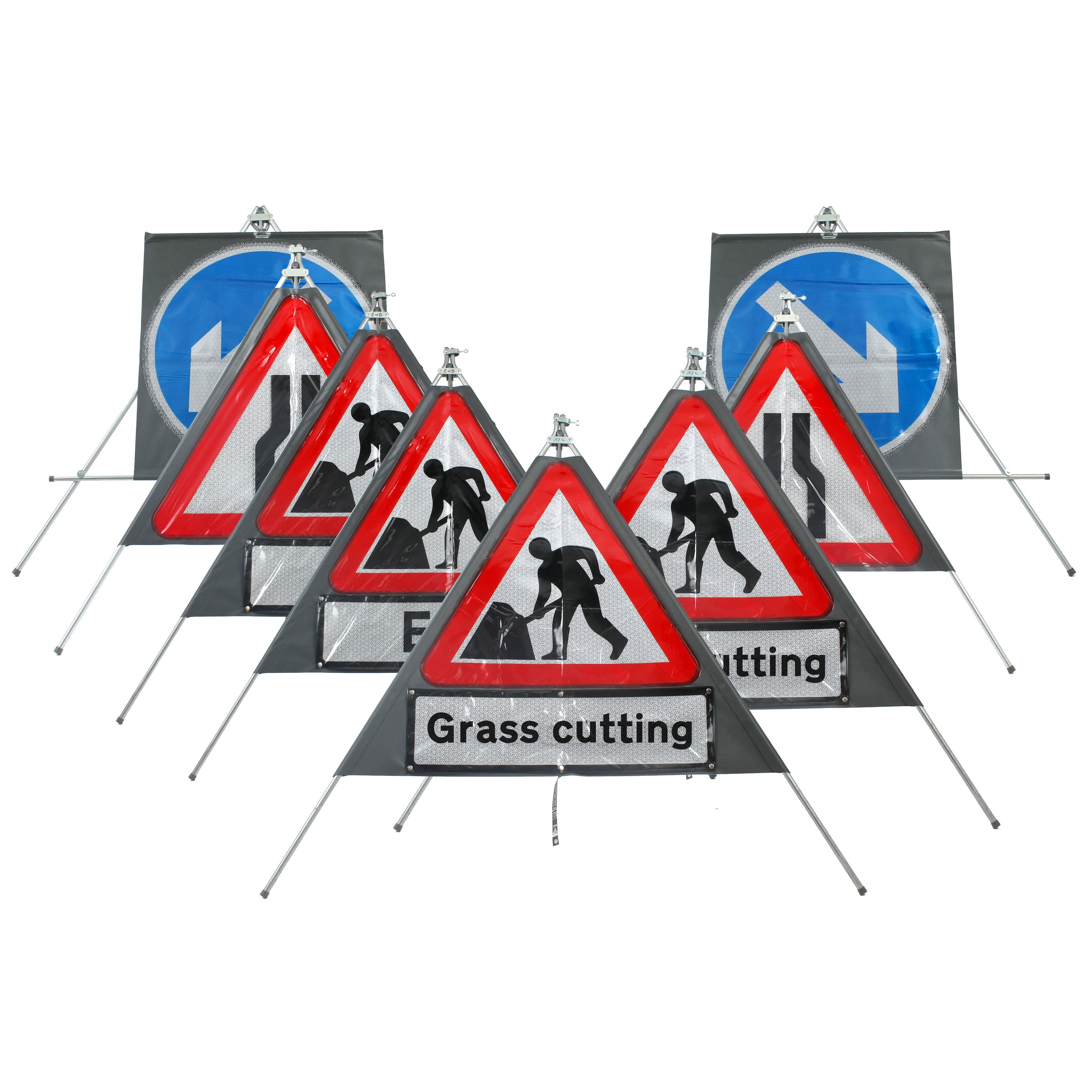 This roll up sign package is just what you need if you spend most of your time riding a mower or using a brush cutter on grass verges. Our grass cutting roll up sign package includes all the major signs needed to ensure drivers know you are hard at work near the roadside.