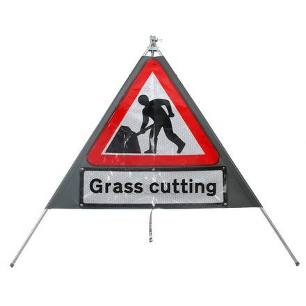 When assembled correctly, our men at work grass-cutting classic roll-up signs are high quality and road-legal (Chapter 8 compliant). They are used to warn motorists and pedestrians of potential hazards and any possible debris on the road created by cutting machinery. They are handy on narrow country roads where this type of hedge maintenance takes place.