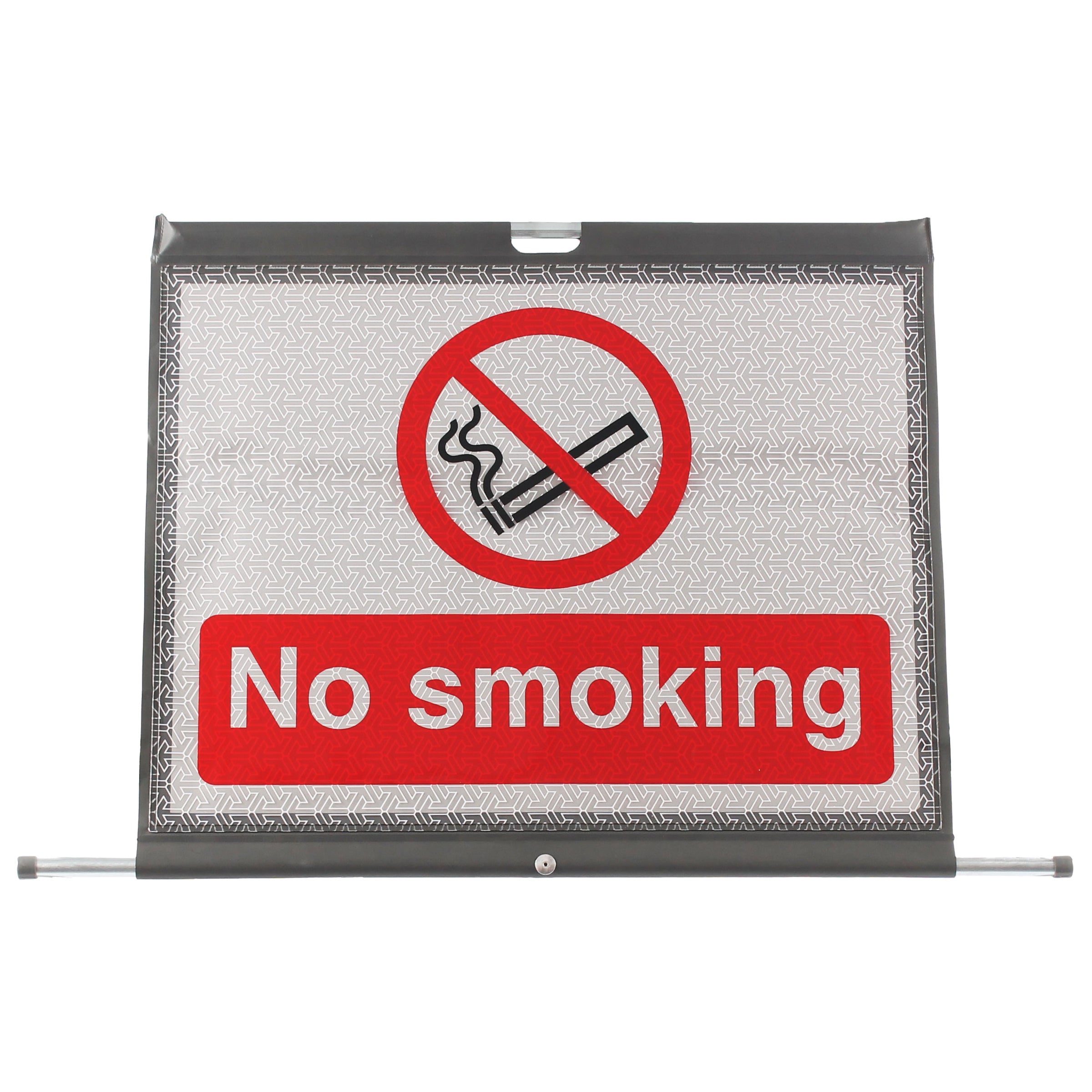 The no-smoking classic roll-up traffic sign is an excellent sign that helps with enforcing restrictions on smoking and vaping on on-site premises or within site boundaries. This collapsible version of the traditional metal and plastic no-smoking signs is a great alternative for construction teams, maintenance teams or emergency responders looking to assemble and dismantle their sites quickly and without fuss. These signs comprise a PVC sign face and galvanised steel frames allowing the roll-up signs to fold in on themselves completely.