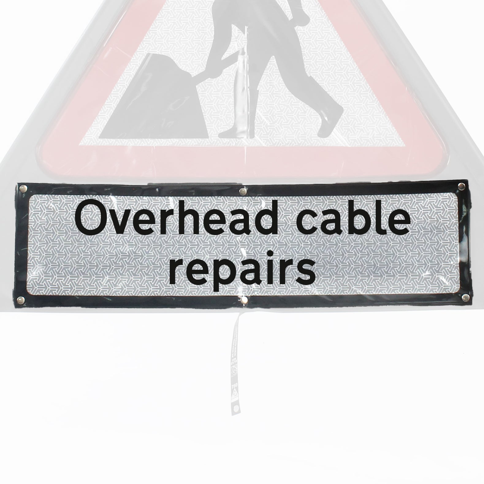 This supplementary plate can be attached to any supplementary plate capable roll up men at work sign using the built-in poppers, to warn road users of overhead cable repairs.