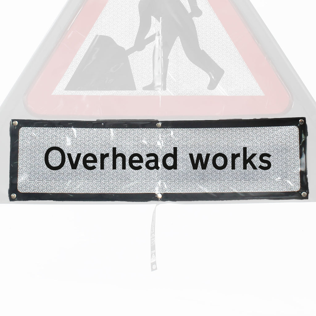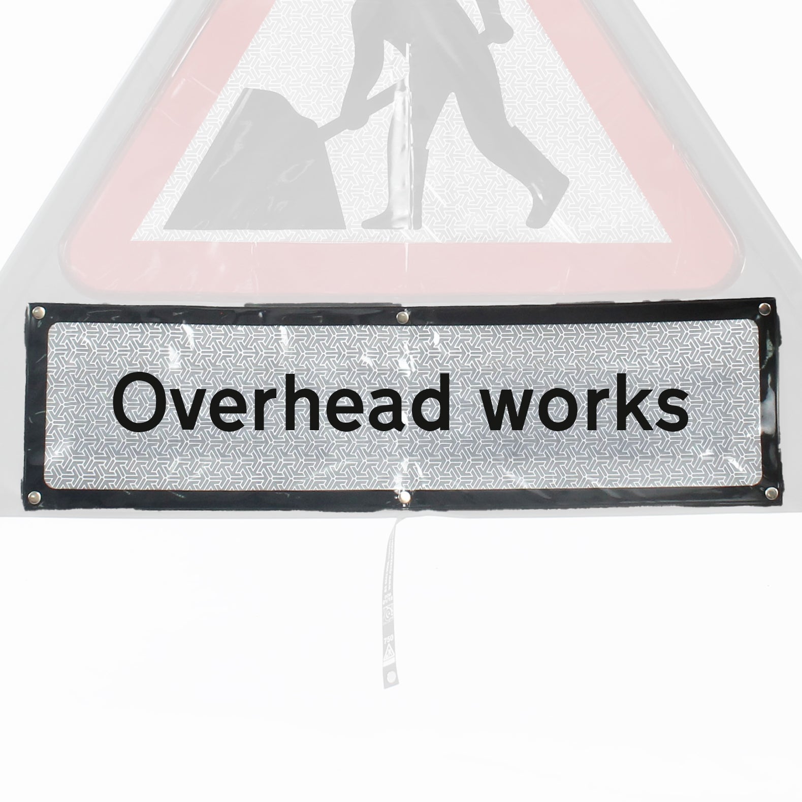 This supplementary plate can be attached to any supplementary plate capable roll up men at work sign using the built-in poppers, to warn road users of operatives working overhead.