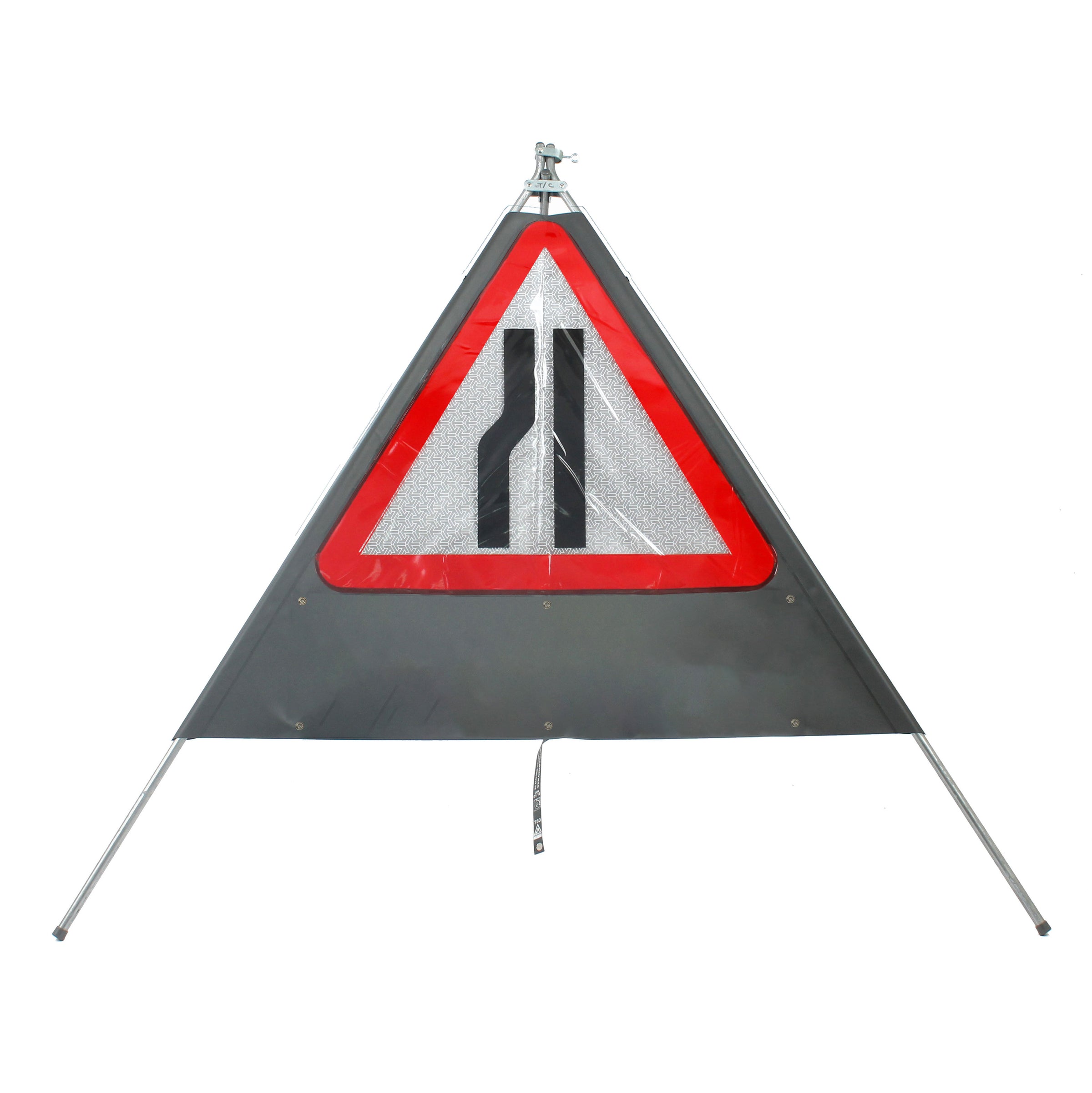You can buy this sign without the 'Single file traffic' supplementary plate if you are solely looking for a replacement sign. If you do not require the supplementary plate capability, you can find the standard Road Narrows Left Classic Roll Up Sign here.