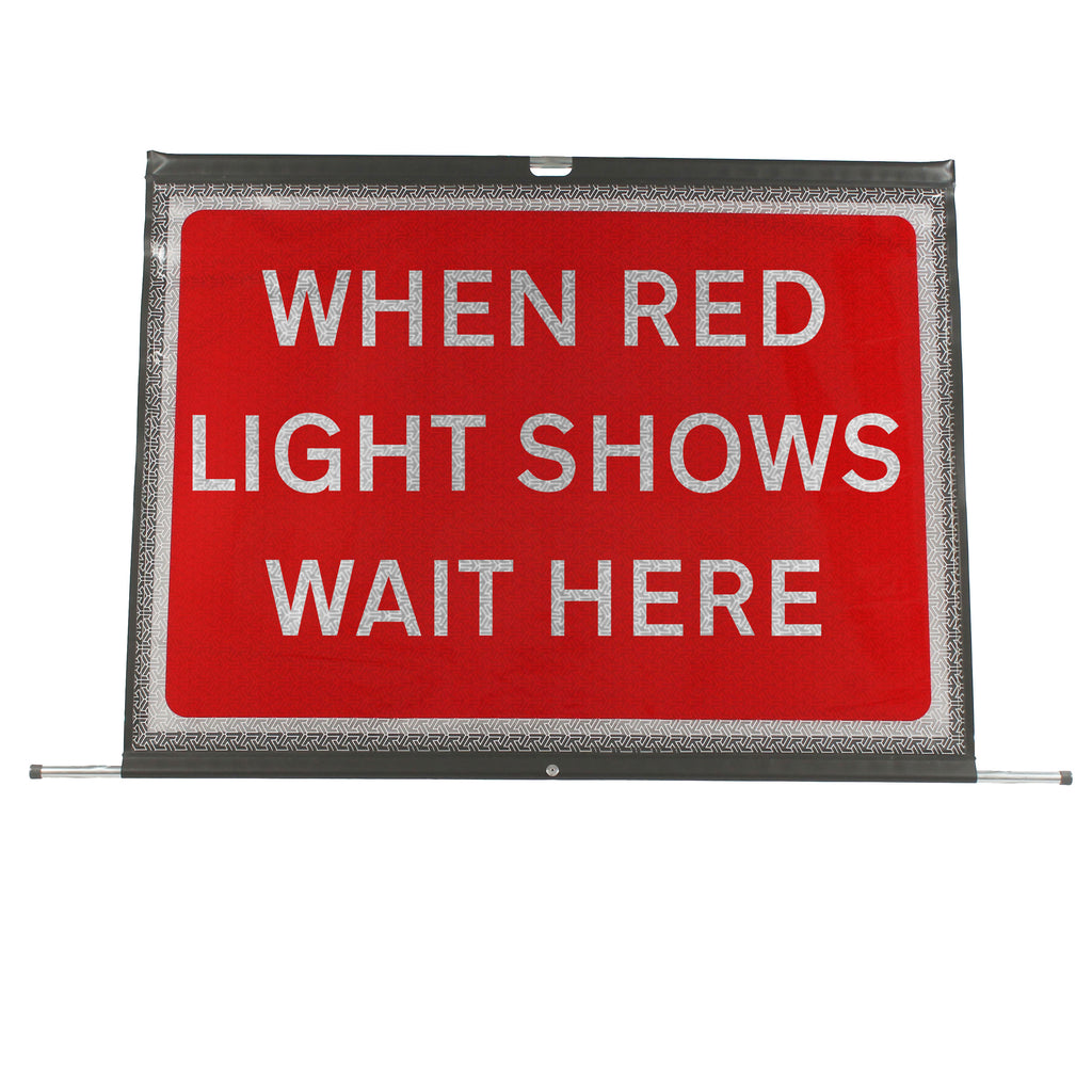 When Red Light Shows Wait Here Classic Roll-Up Sign