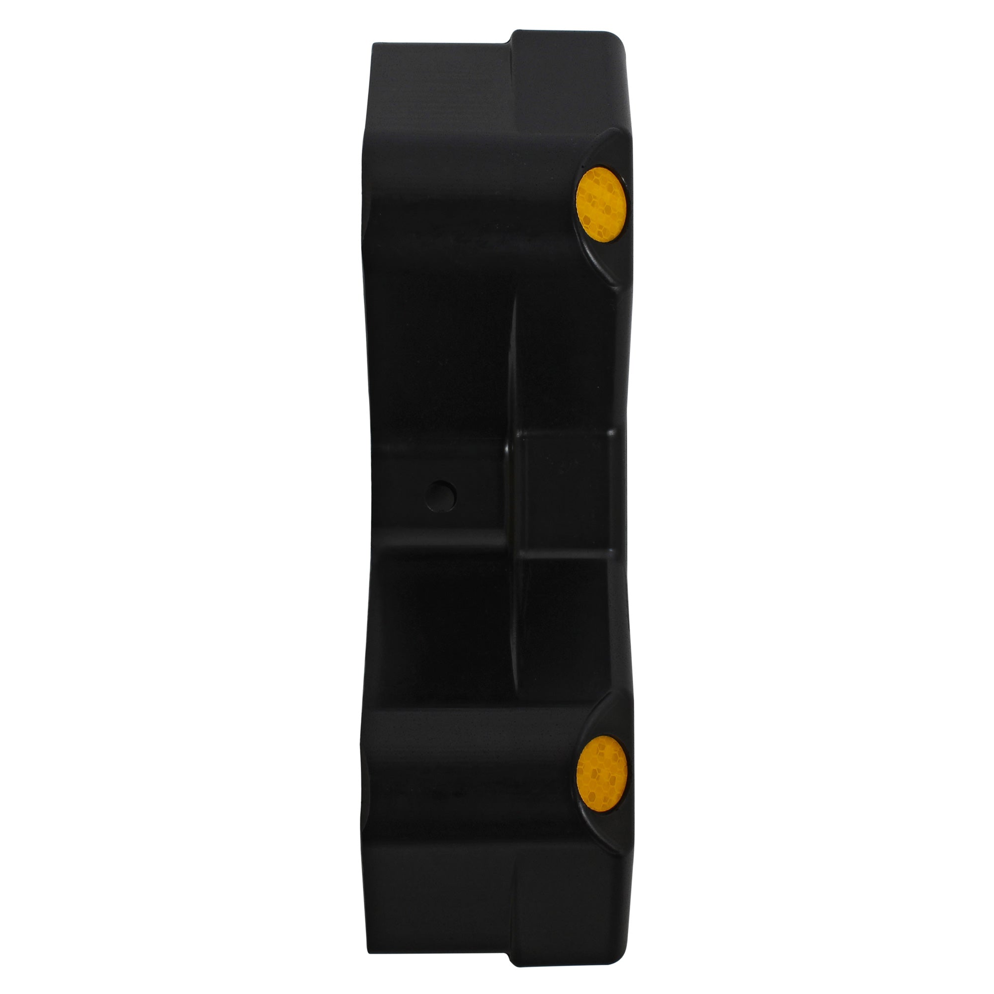 Two reflective dots ensure that this otherwise black barrier end cap can be seen in lower light levels. When installed in high traffic areas in warehouses and car parks this compact plastic end cap will cover sharp edges that could snag legs and clothing if left unprotected.