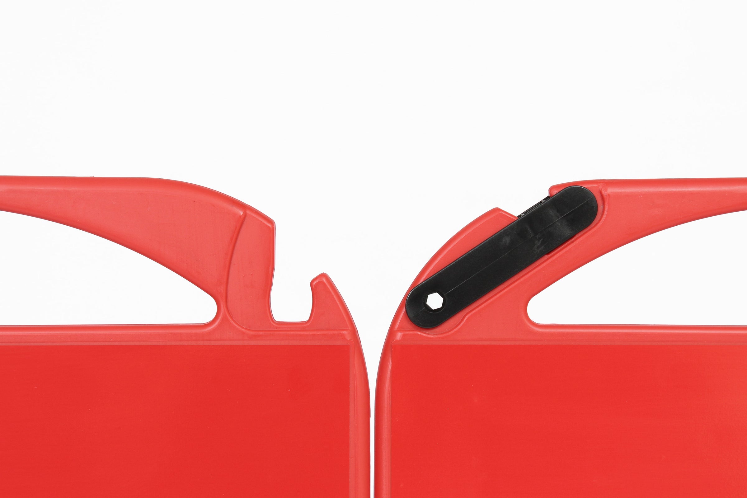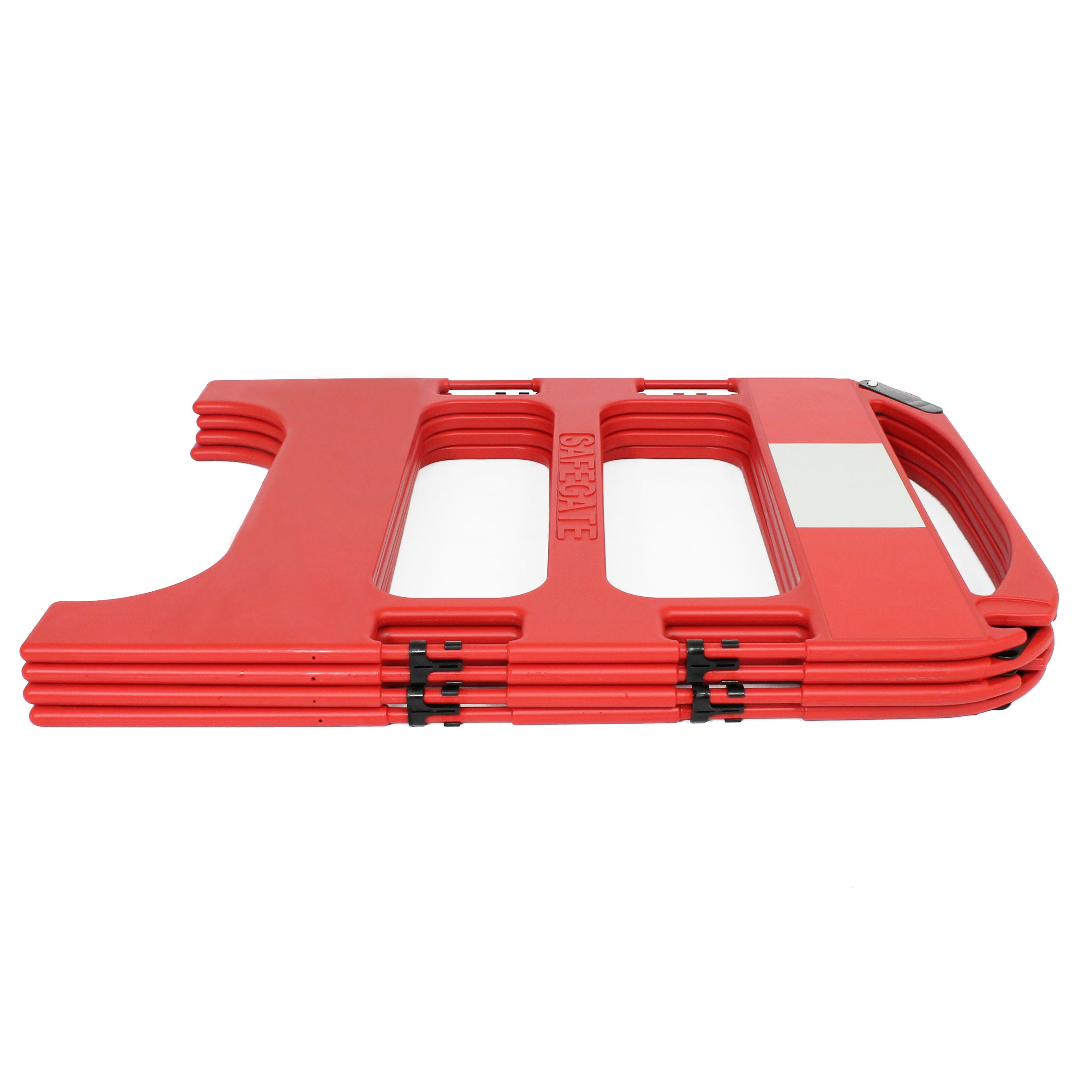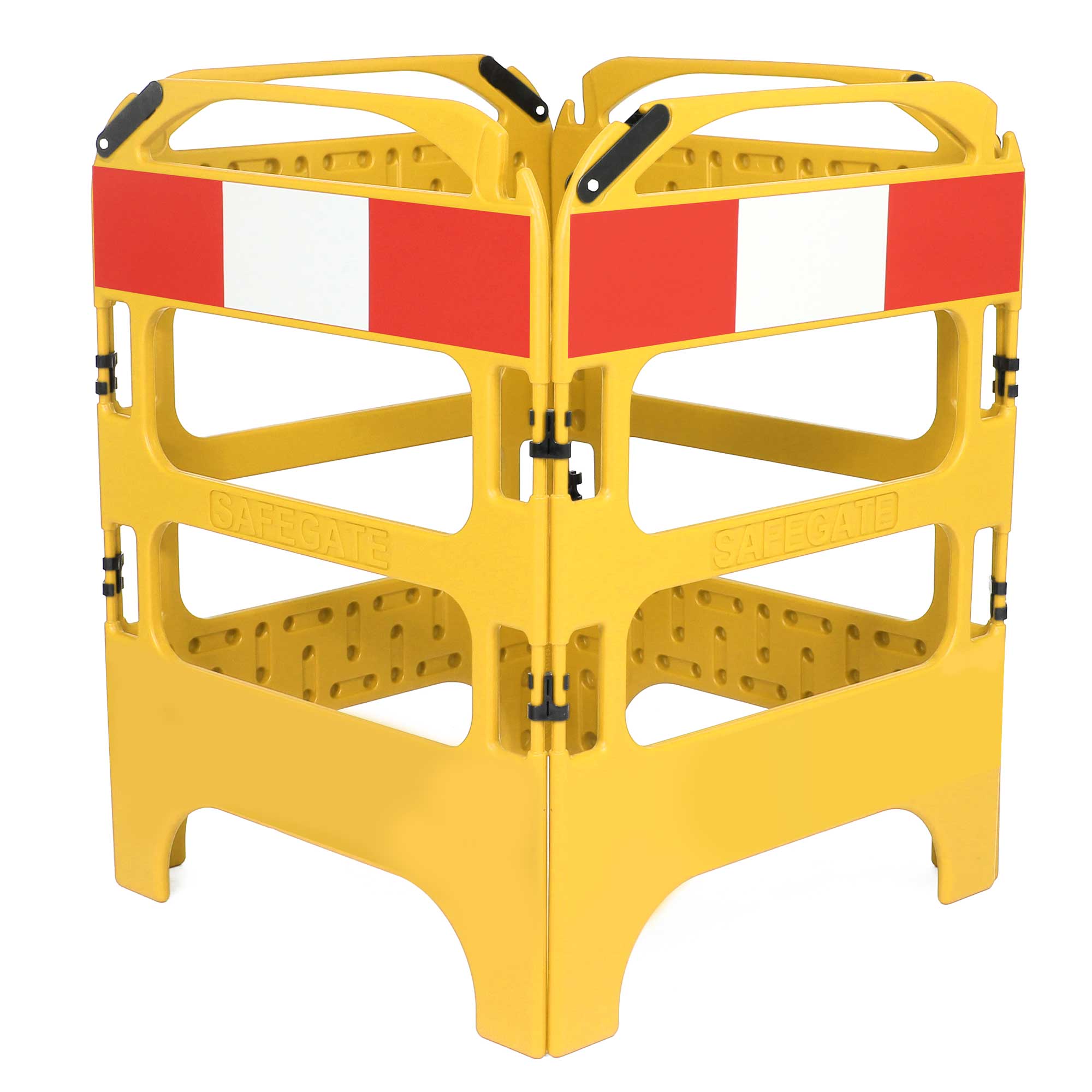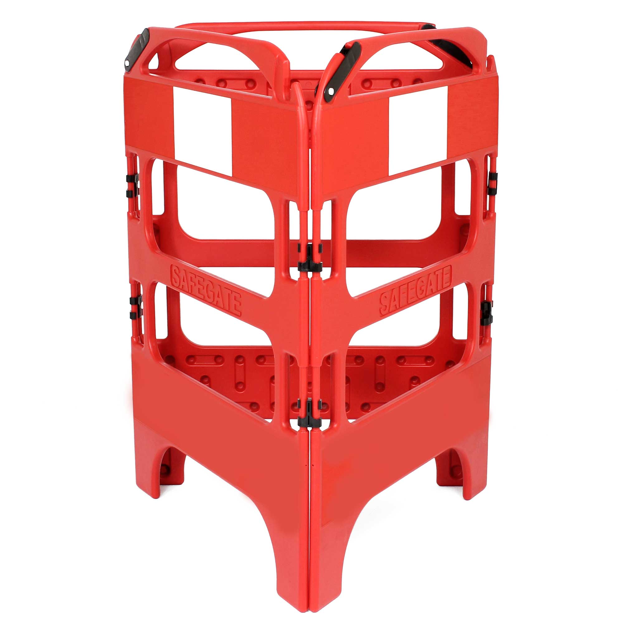 Using the latest moulding processes and made from plastic instead of steel, these gates can be battered and scraped all without the worry of weakening from rust corrosion and metal shape retention. Not only are they more durable, they are 30% lighter making these effortless to carry around. The all new design now incorporates top hinges for deploying in straight lines and increasing stability.