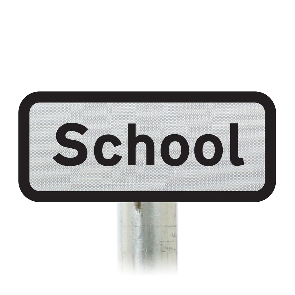 This permanent sign supplementary plate reading “School” should be used on roads where children are crossing frequently to get to or from a school. An alternative to this supplementary plate is the Patrol sign 547.1.