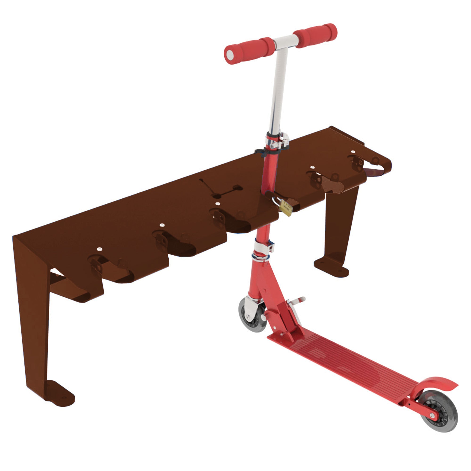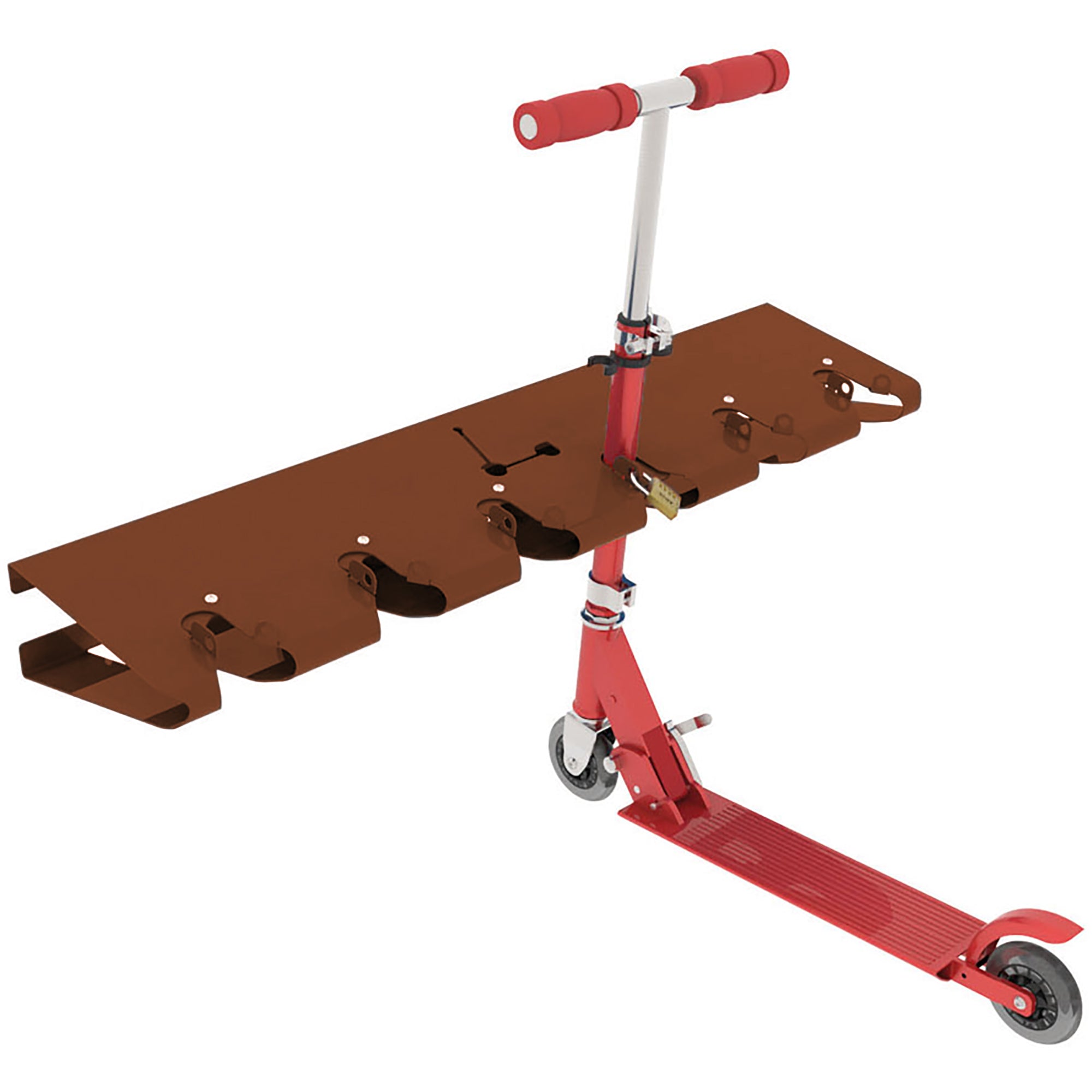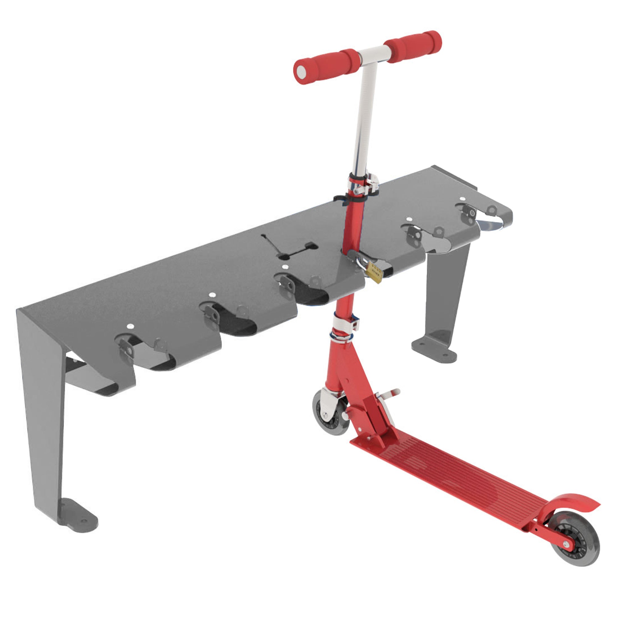 The Scooter rack has a clean and uncomplicated design that provides an impressive and effective storage solution for securing scooters. It offers a 6 space model in a compact and smart appearance.