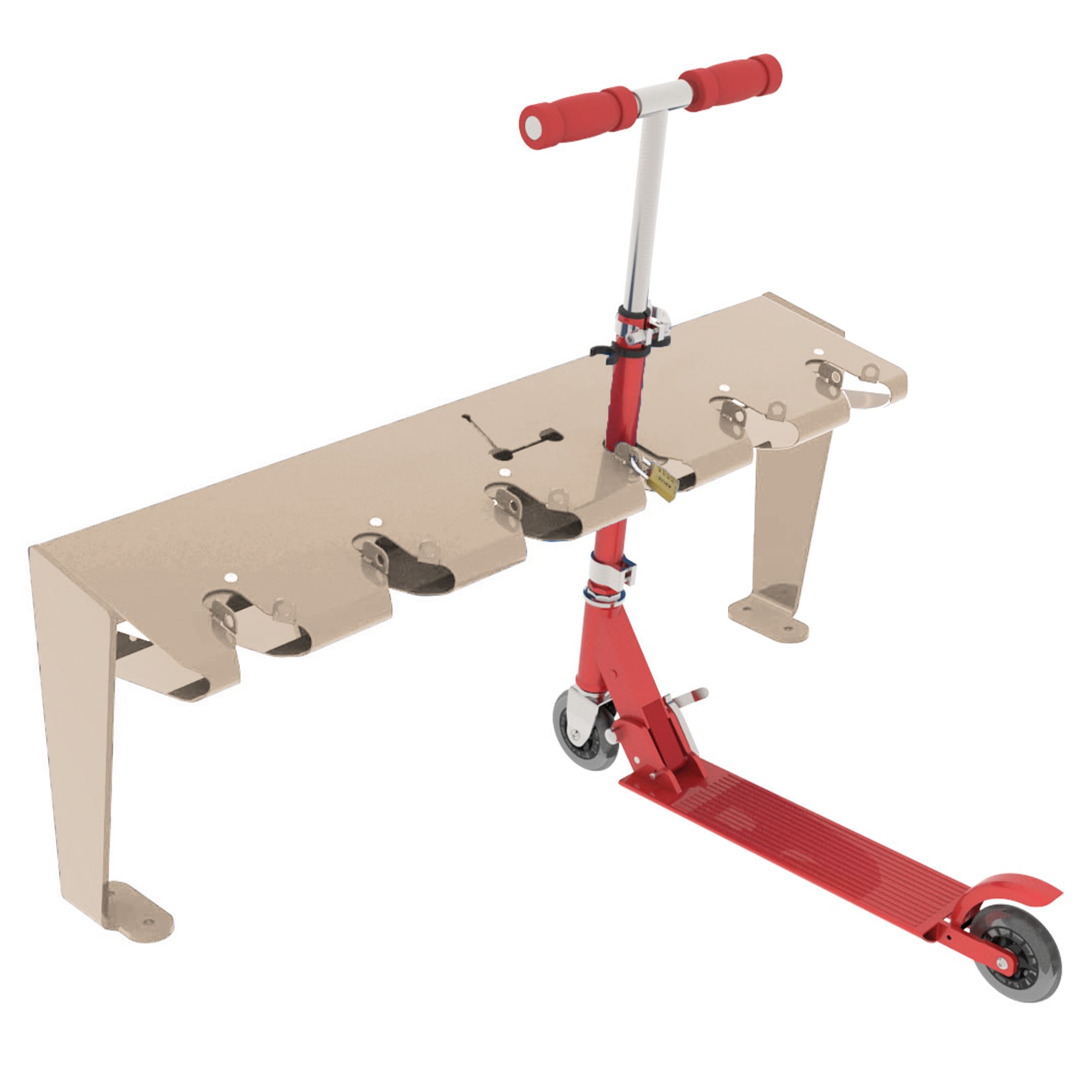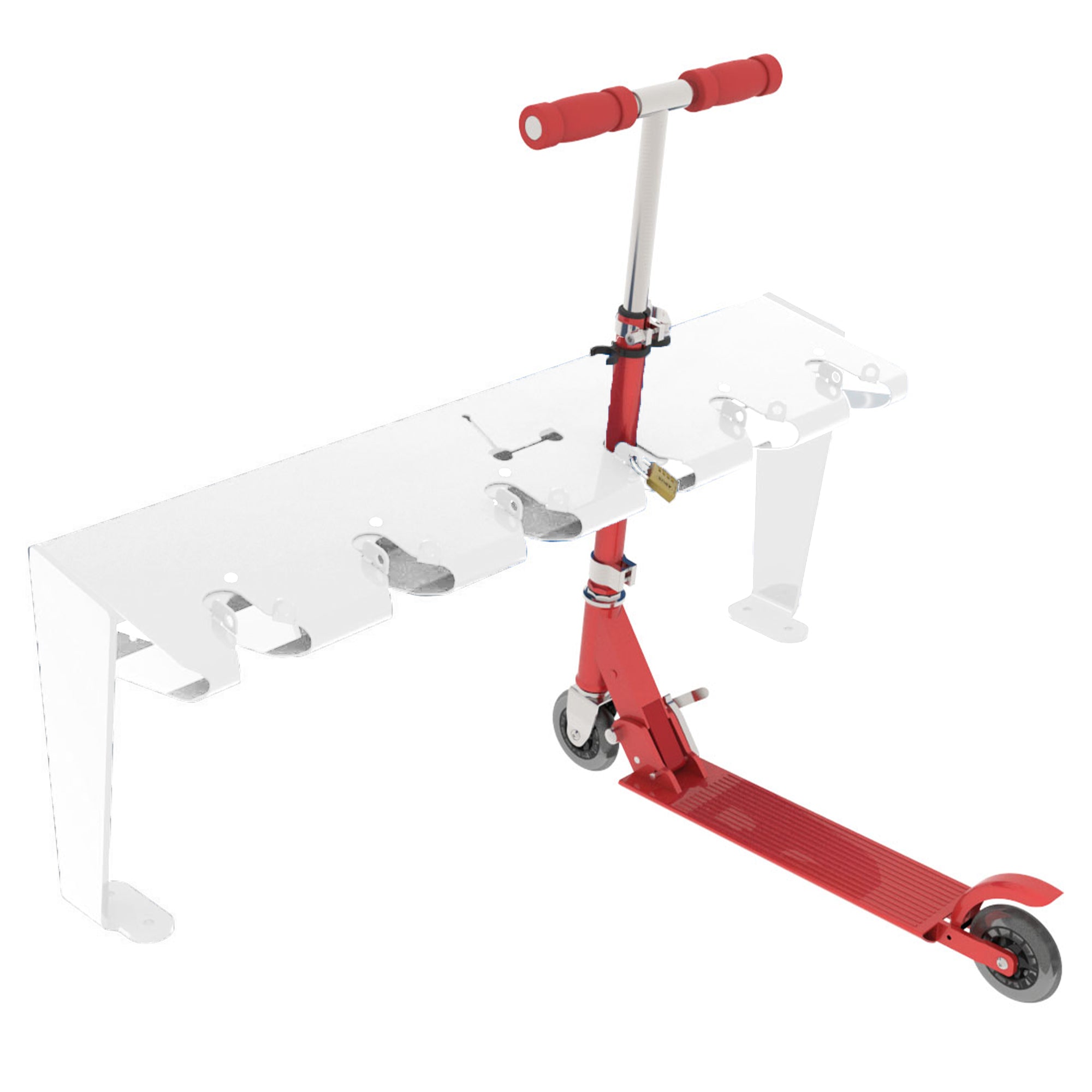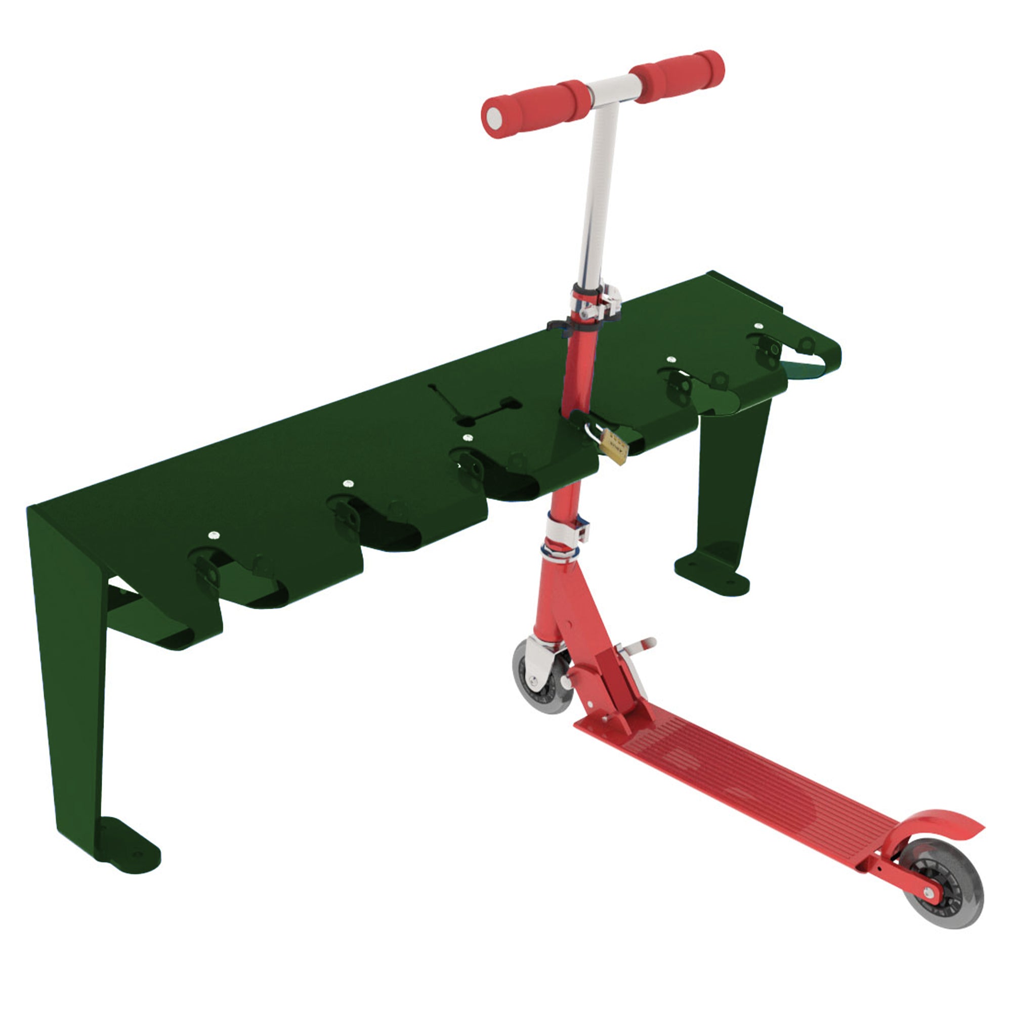 The Scooter rack has a clean and uncomplicated design that provides an impressive and effective storage solution for securing scooters. It offers a 6 space model in a compact and smart appearance.