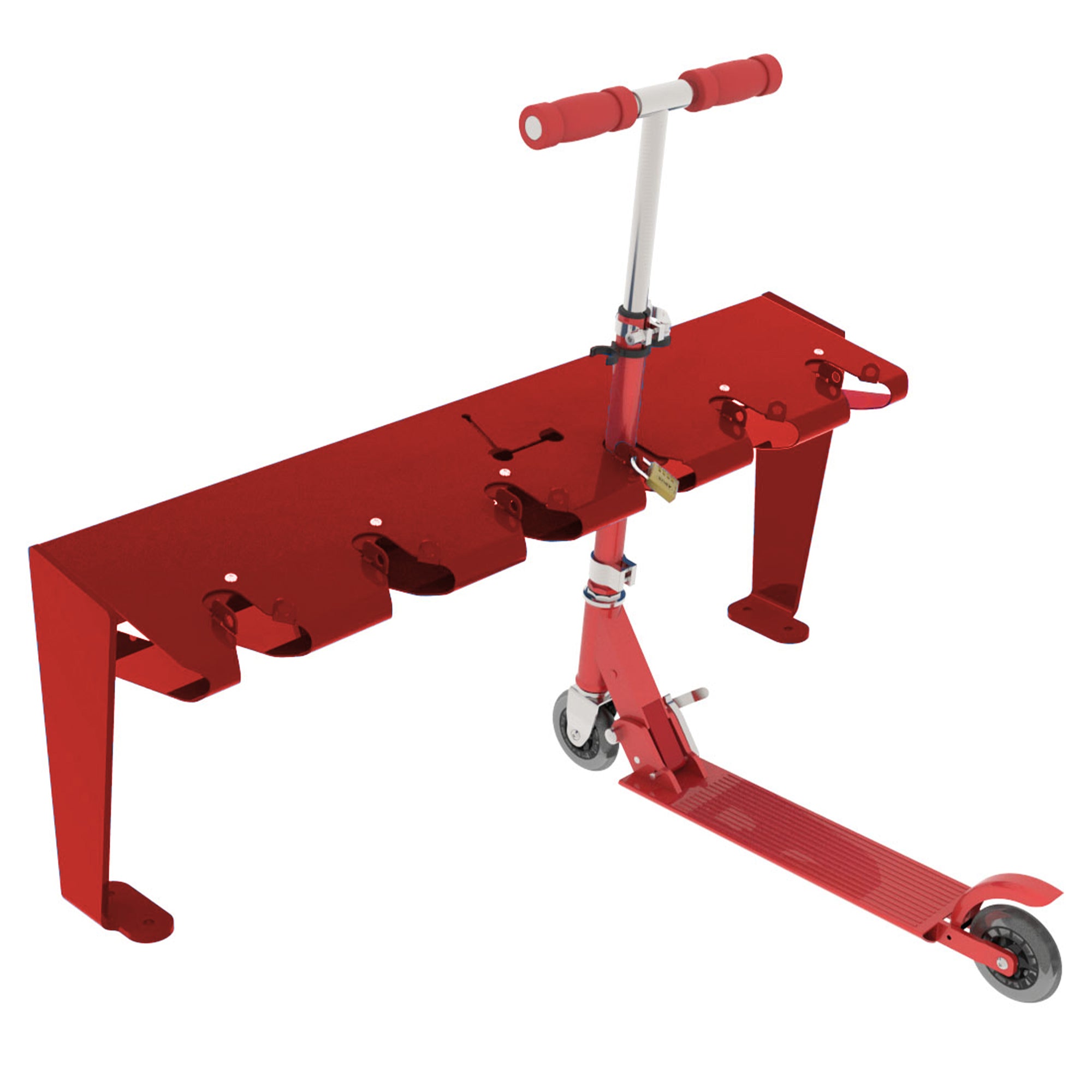 The Scooter rack comes in two configurations either being wall-mounted or with legs offering two options to best suit your requirements. Both of these versions come in strong galvanised and painted steel to bring a durable system that is eye-catching for all of the right reasons.