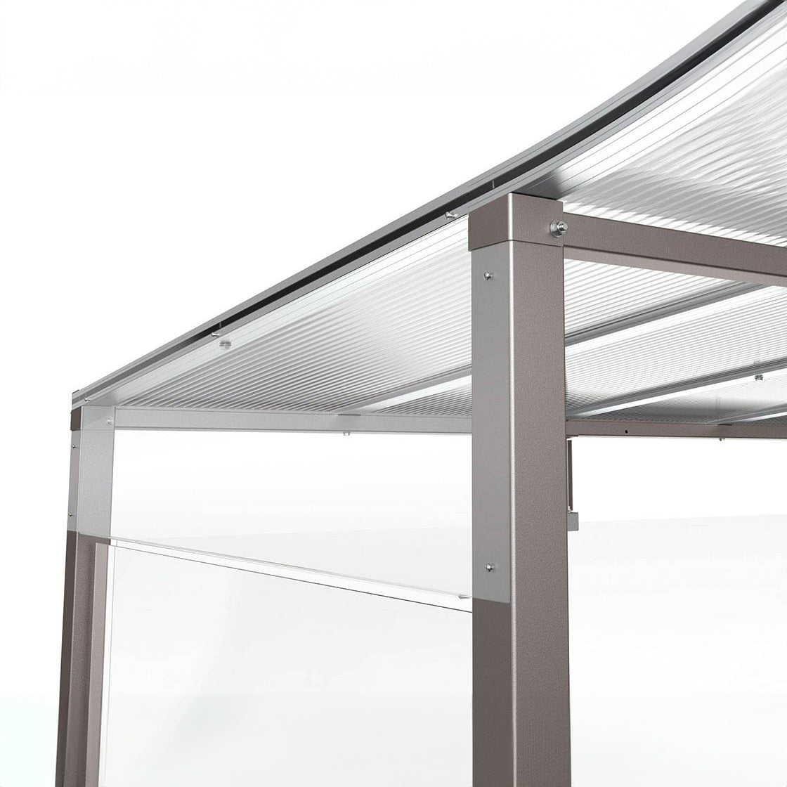 This wind protection is designed to be installed above the side cladding of the Procity Modulo Shelter. It is strategically placed to block gusts of wind, rain and other elements from infiltrating the bus shelter from the top sides of its wall.