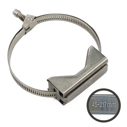 Two universal clamps are required to mount one of our post mountable signs to a pole (one for each rail). The universal clamp provides adjustable sizing, allowing easy mounting to any pole from 45mm to 217mm including odd pole profiles. This clip is useable with any sign from our post mountable sign range.