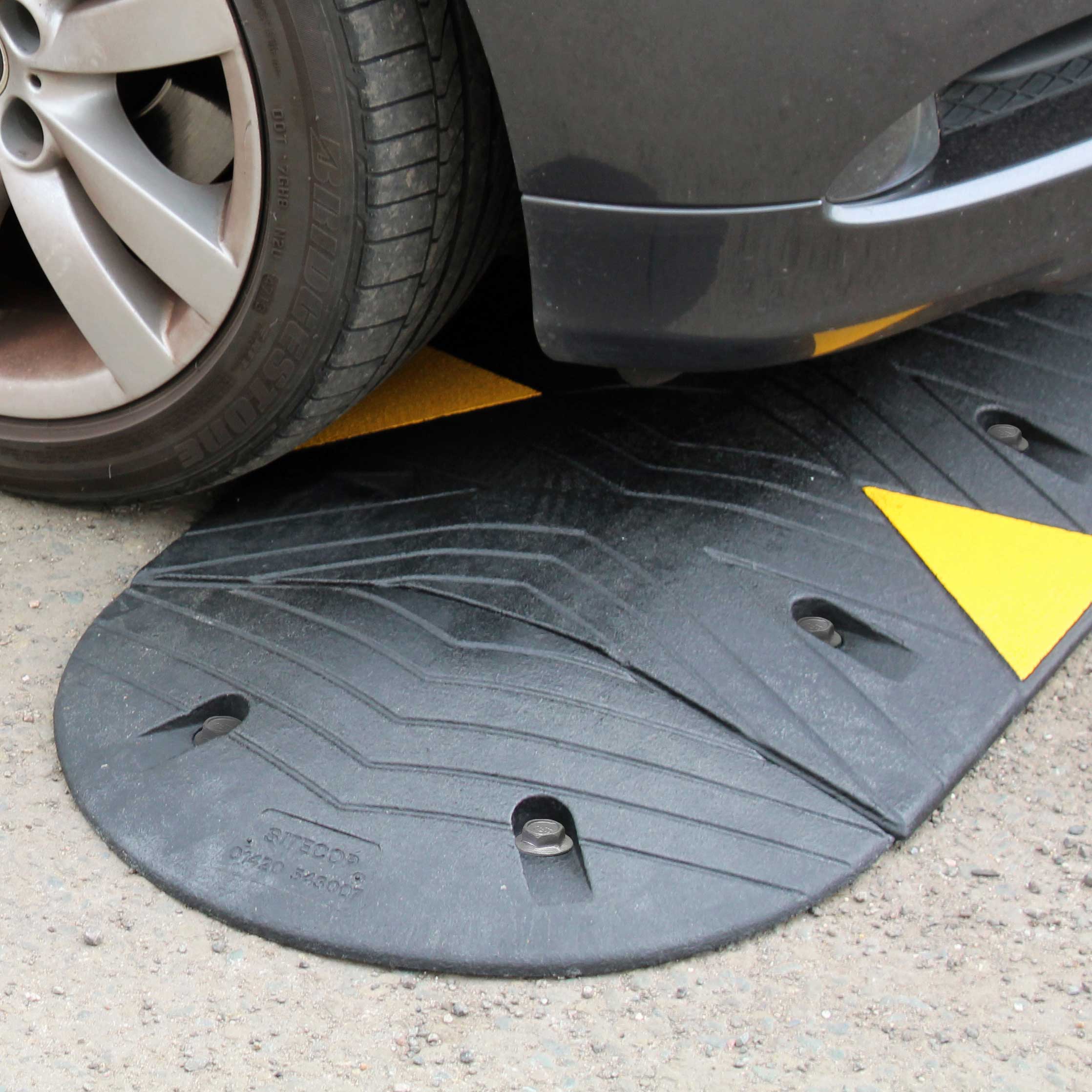 The SiteCop Standard rubber speed bump kit offers excellent value for money and a premium build quality. It is made from recycled rubber needles rather than granules, which makes for a much stronger speed bump that is ideal for busy public areas. When compared to PVC ramps, these rubber ramps achieve a much longer life span.