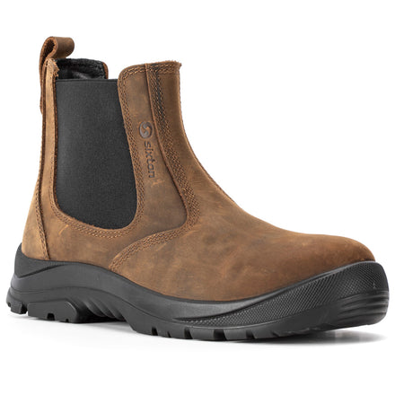 The Dealer Boot part of the Touring range from Sixton Peak is a safety boot focused on providing maximum comfort whilst remaining as light as possible. This boot is a laceless style, ankle-high boot which offers great levels of protection thanks to a greased Nubuk Dakar Leather which is a lightweight, waterproof upper to complement the protective soleplate.
