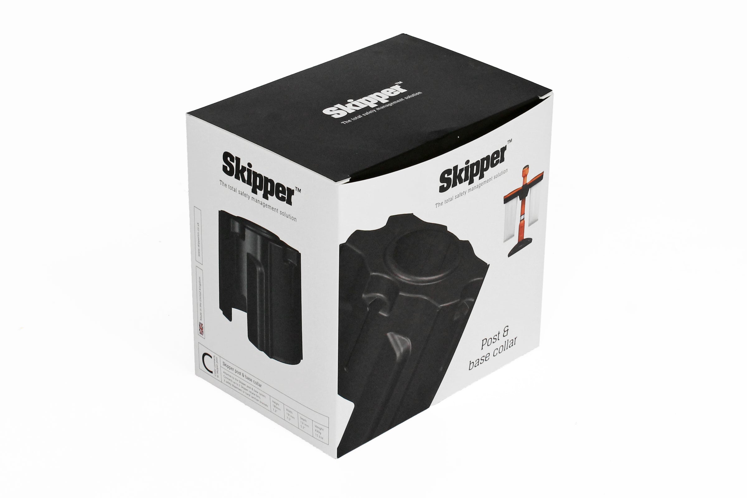 The Skipper post and base collar is the key ingredient for getting the most from your Skipper accessories. The collar slides over the top of the Skipper post and seats firmly acting as a solid platform for The Skipper recycle bin, safety dispenser and hand sanitiser bracket.